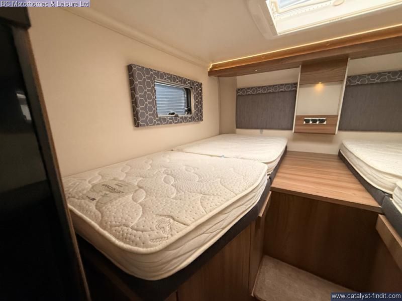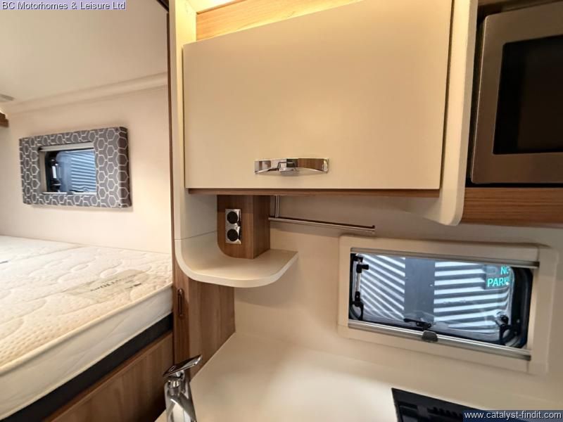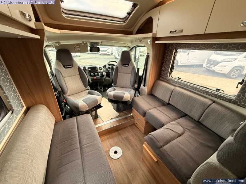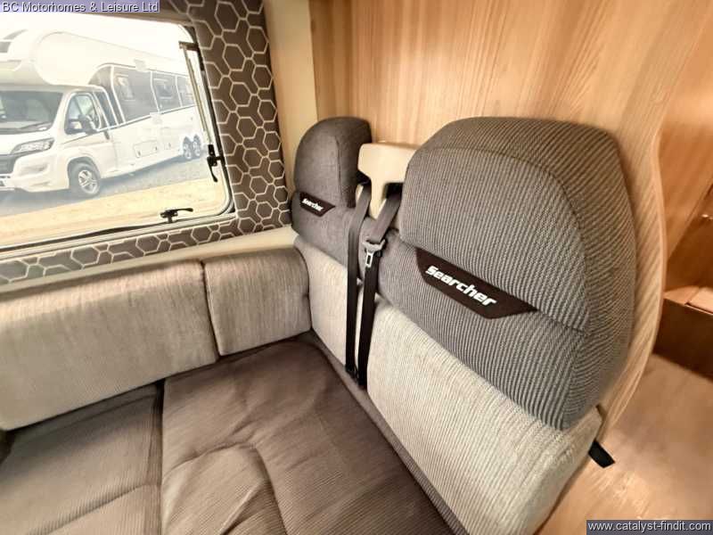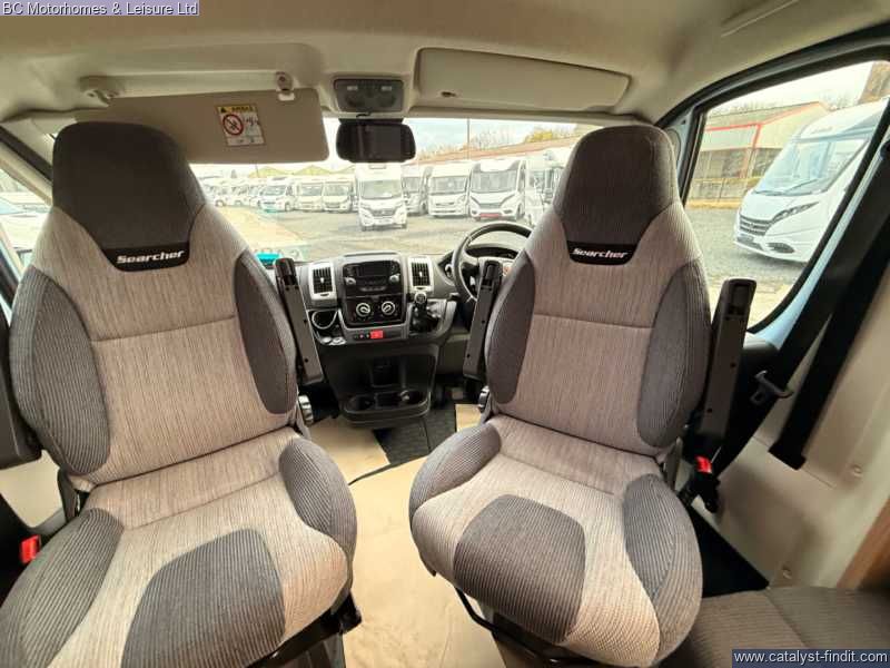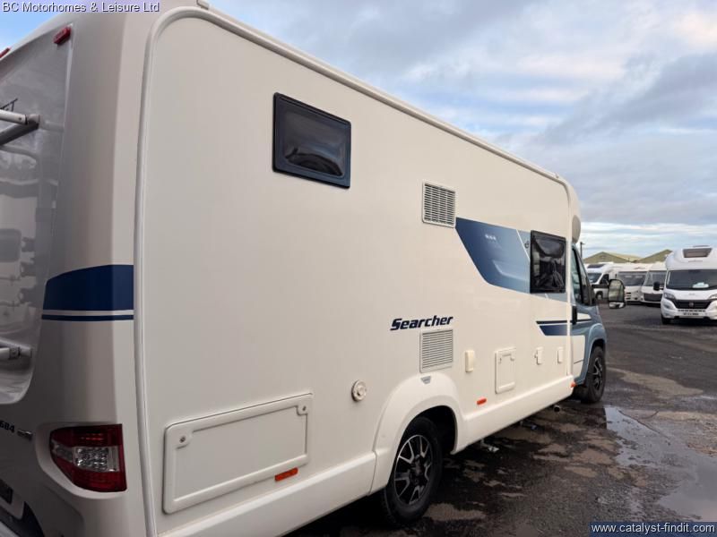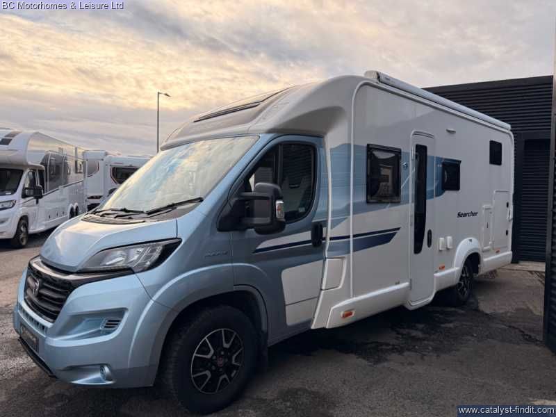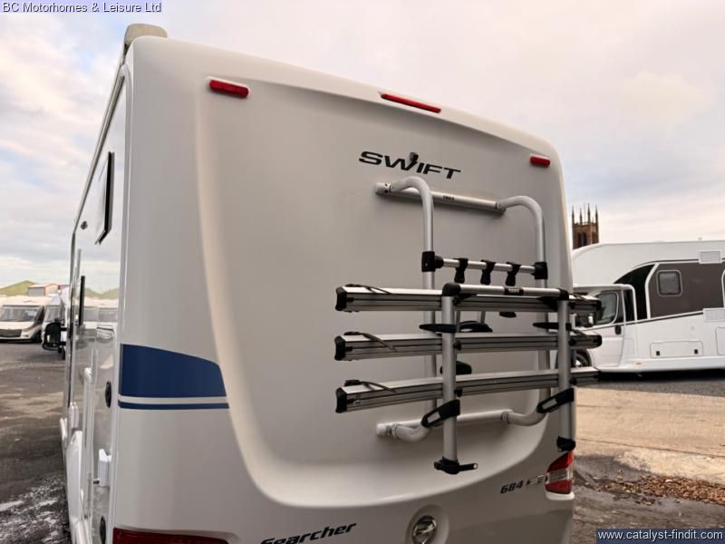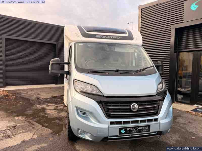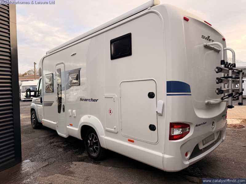 - Step into adventure and comfort with the 2019 Swift Searcher 684, a versatile and spacious 4-berth motorhome designed for those who love to travel in style. Built on the reliable Fiat Ducato chassis with a powerful 2.3L engine, this motorhome combines modern convenience with practical design, making it perfect for couples, families, or weekend explorers. Key Features: 4 Berth / 4 Seatbelts – Ideal for families or couples wanting extra space Fully Equipped Kitchen Oven, grill & 3-burner gas hob Fridge/freezer Microwave Ample storage & worktop Washroom Cassette toilet Interior – Stylish upholstery, LED lighting, and high- quality cabinetry throughout Cab Air Conditioning & Cruise Control – Comfort on the move Reversing Camera – Easy maneuvering Truma Heating & Hot Water System – Stay warm all year round Awning & External Storage – Perfect for outdoor living External GAS BBQ Point External Shower Point