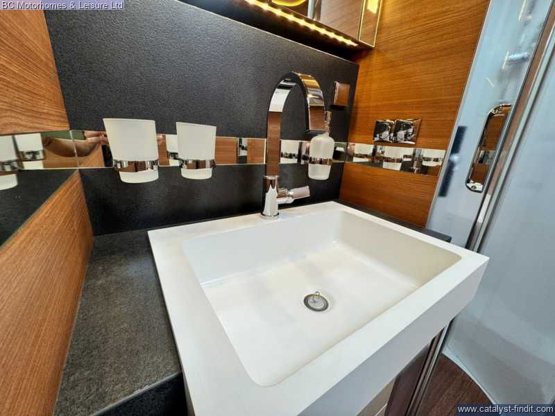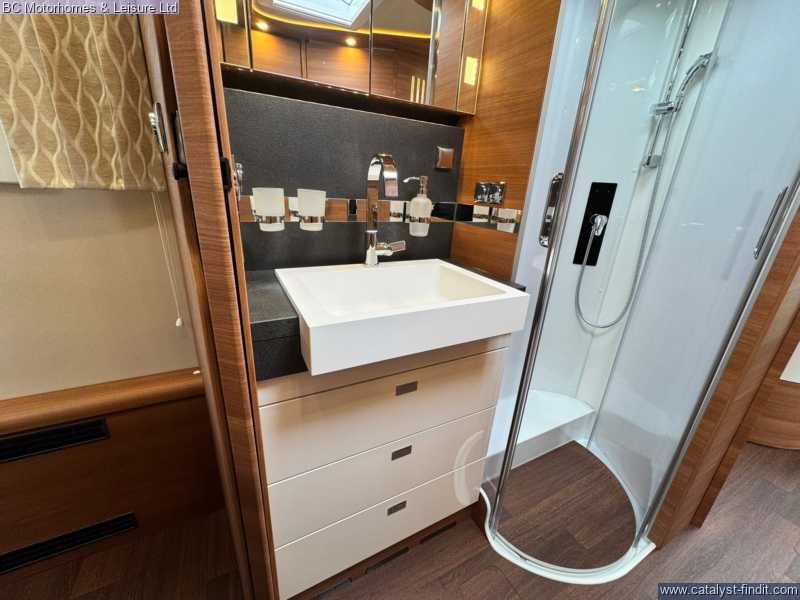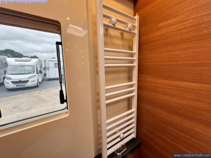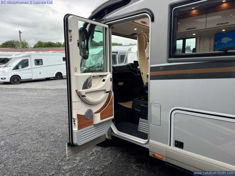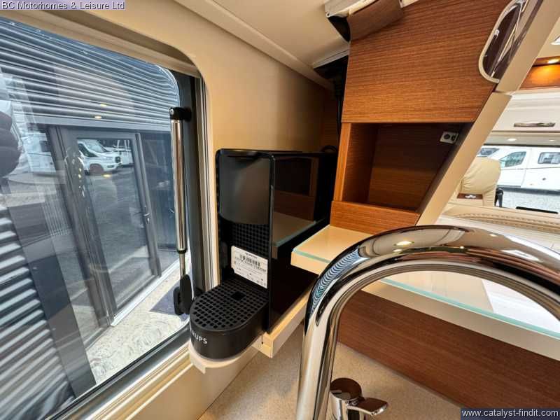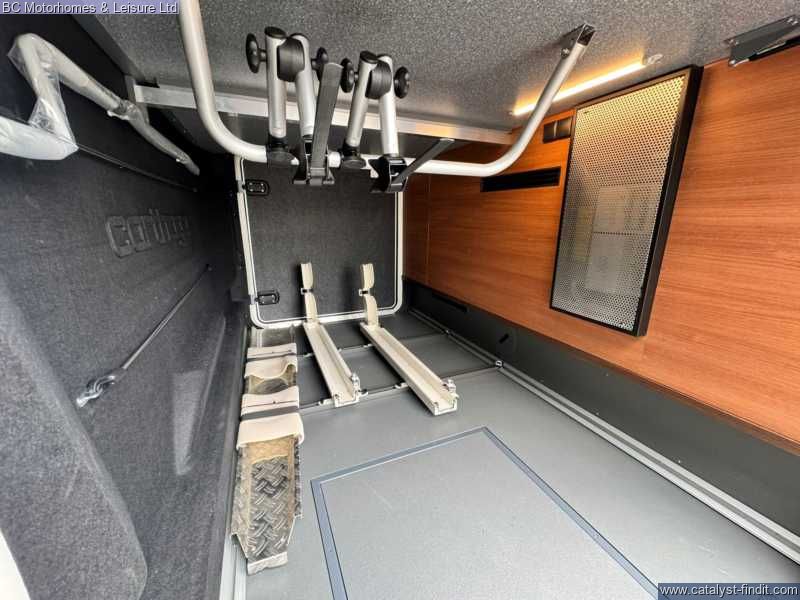 - consisting of: •USB socket in the overhead storage cabinet above rear bed (in package included) •Wiring for reversing camera (single lens) •Bus mirror system in black/white, •Scooter garage upgrade with needle felt luggage nets •Angle and height adjustable seat surfaces (front and back) driver’s cabin seats •SOG toilet ventilation via roof chimney (only with cassette toilet option) •Truma DuoControl CS •Radio preparation with roof antenna with DAB+, loudspeakers (4x), DVB-T2 reception •Wiring for satellite system •XL habitation door “premium two 2.0” (width 63 cm) with double locking, window and integrated insect screen •Central locking for driver’s cabin and main cabin doors, remote control with ?coming home” function •Charge booster •Wiring for solar energy system (incl. cable set from electrical centre to socket on roof) •Designer bar cabinet with glass holder and glass set above kitchen •Crank-operated rear supports to prevent swaying in standing position