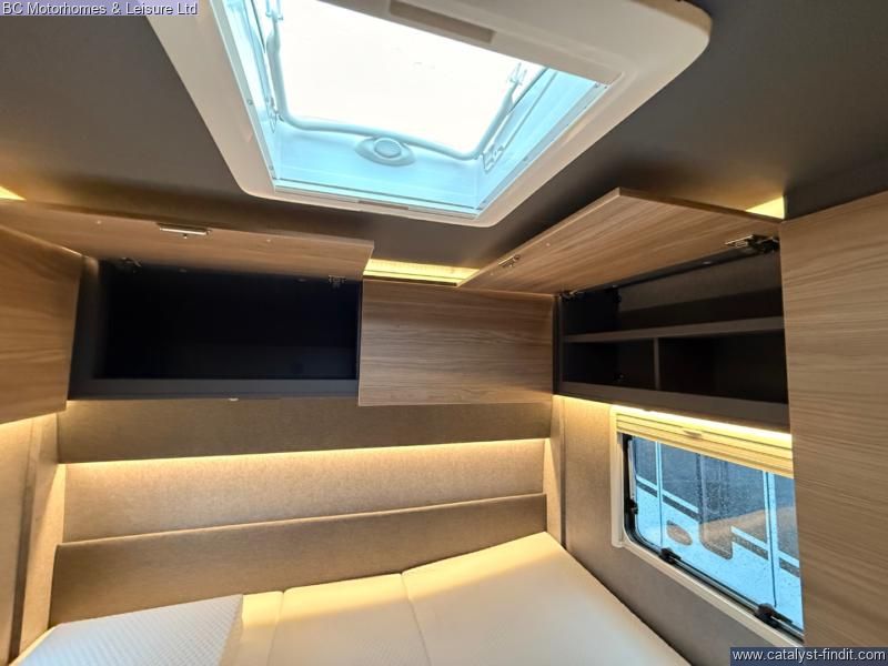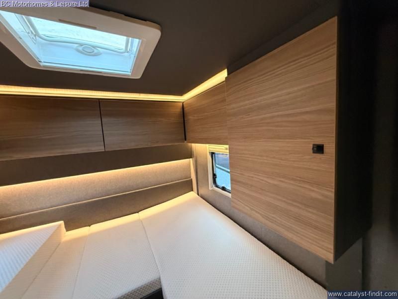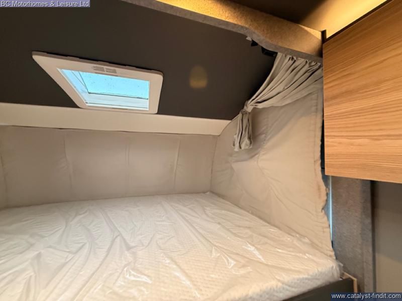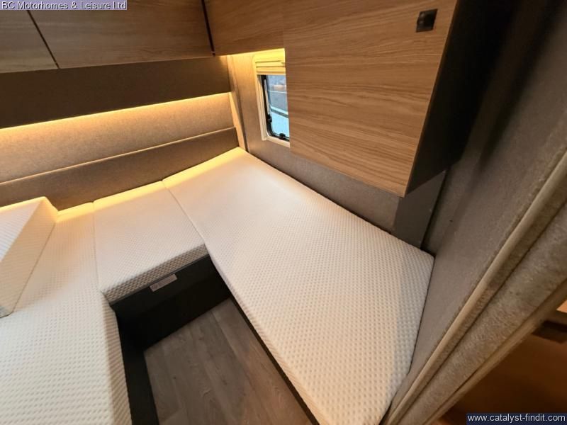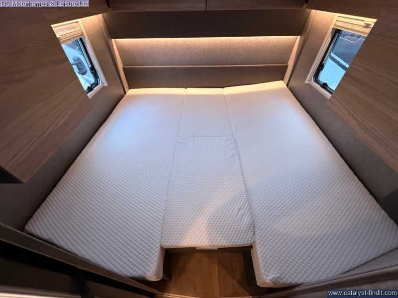 - Inside, you’ll find a beautifully finished interior with spacious twin single beds over a large garage, a well- equipped kitchen, and a stylish front lounge designed for relaxing or entertaining. High-quality materials and clever layout choices make this motorhome feel like a true home on wheels.