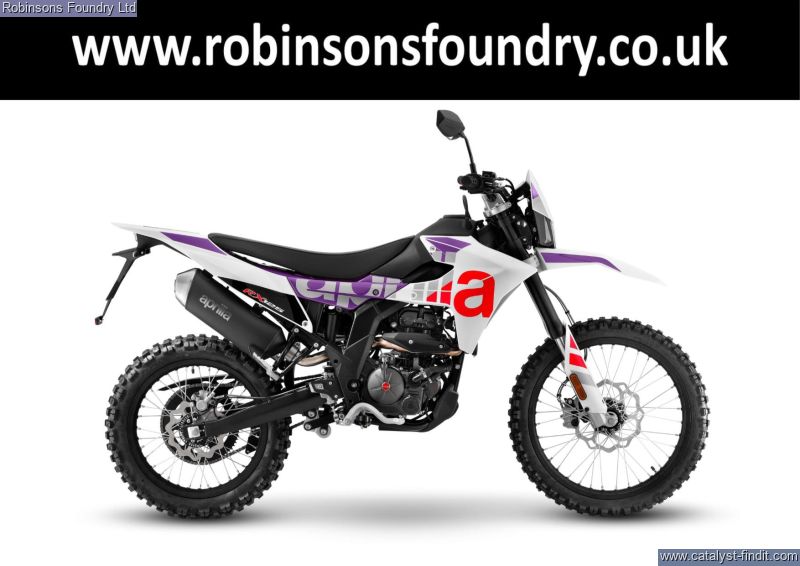 - Agile on roads and unstoppable off-road, the Aprilia RX 125 is all about adventure. With its Aprilia off-road roots, its DNA includes the winning exploits of the Aprilia Tuareg Rally. With advanced technical solutions and a modern Euro 5+ engine, the RX 125 is ready to take on the challenges of every day life.The sharp lines and glossy black finishes that emphasise the sleek silhouette of the Aprilia RX 125 leave no doubt about its true nature. Its steel frame, long-travel suspension and spoked wheels – 21” at the front and 18” at the rear – fitted with knobby tyres provide maximum control on any terrain. Like its motard sibling, the SX 125, it features Bosch ABS with an anti-rollover function that acts on the front wheel, regulating rear wheel lift. Racing-inspired wave-profile brake discs ensure precise braking even in the most extreme conditions.Walkaround videos and delivery available upon request. Low rate finance available from just £100 deposit. (T&C's Apply) We are the South Easts premier Aprilia retailer so if you don't see what you are after then don't hesitate to call.