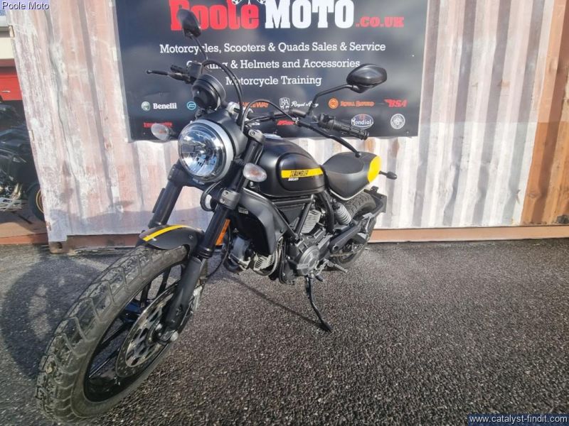 - The Ducati Scrambler 800 is an iconic, lightweight, and modern-classic motorcycle known for its agile handling and user-friendly performance, blending a "post-heritage" design with modern electronics. Key selling features of current models (2023-onwards) include a comprehensive electronics package, modern connectivity, and customizable design. Engine and Performance Accessible Power: The 803cc air-cooled L-twin Desmodromic engine is designed to be punchy and provide generous low- to-mid range torque, making it suitable for both new and experienced riders. It produces around 73-75 bhp. Ride-by-Wire: The introduction of a ride-by-wire throttle system allows for a smooth and immediate power delivery. Lightweight: The latest generation is approximately 4kg lighter than its predecessor, thanks to a new frame, swingarm, and a refined engine, enhancing its agility
