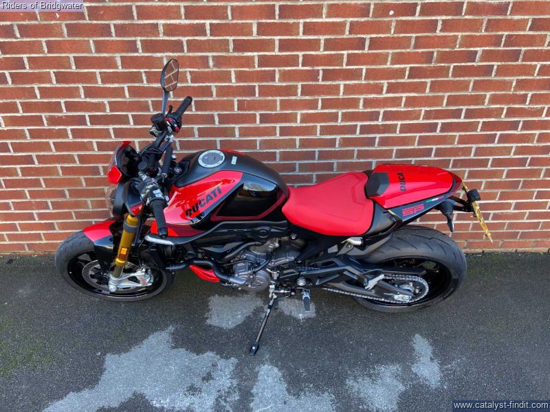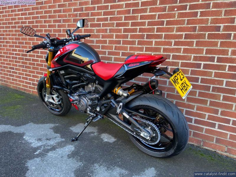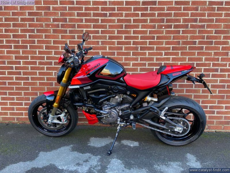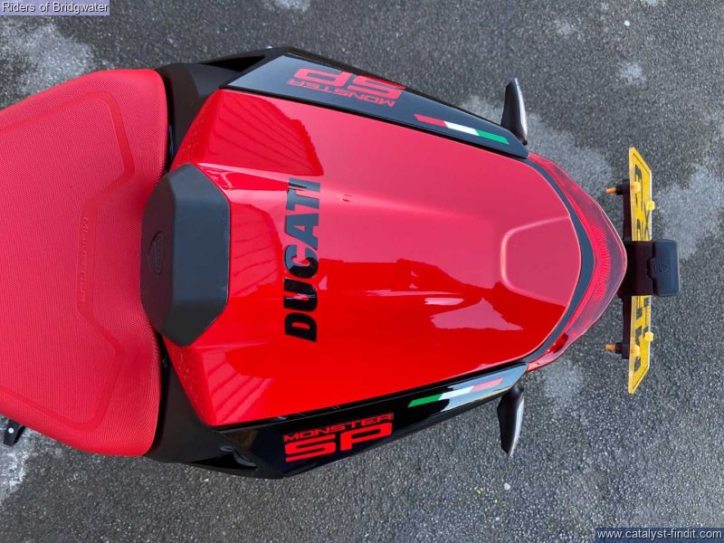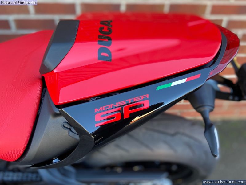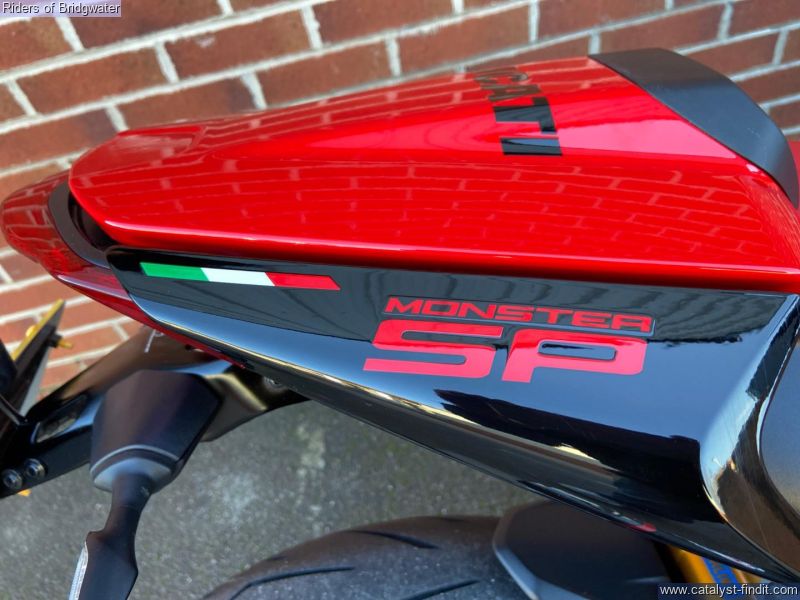- Great example of the Ducati Monster SP model with its MotoGP apeing colourscheme, Ohlins front & rear suspension, steering damper, traction control, ABS, Brembo brakes & TFT dash. This bike boasts a de-cat link pipe for its Termignoni exhaust, tail-tidy, solo seat cowl & chin spoiler.