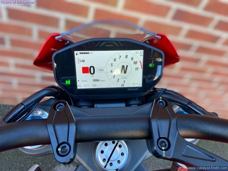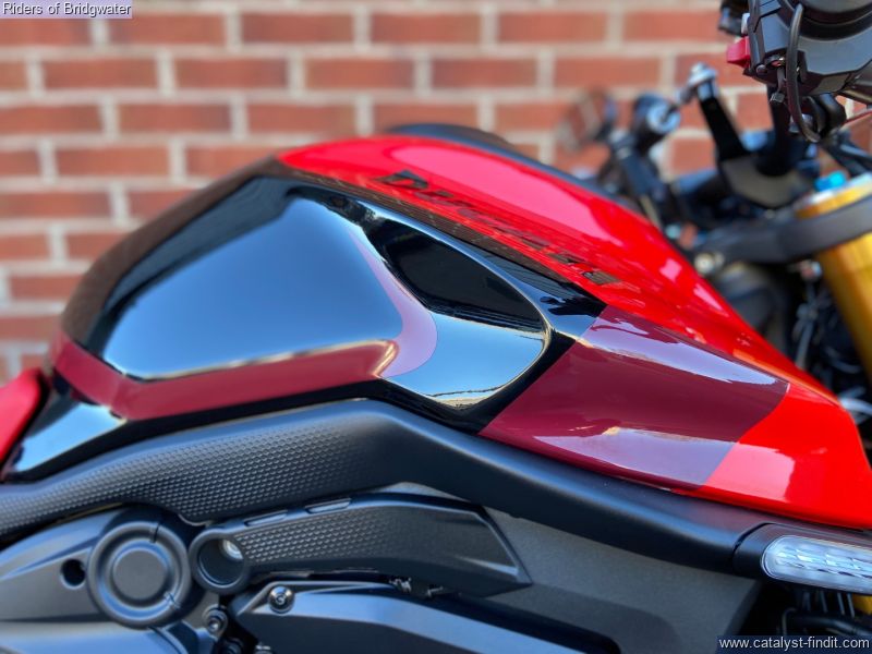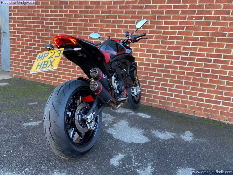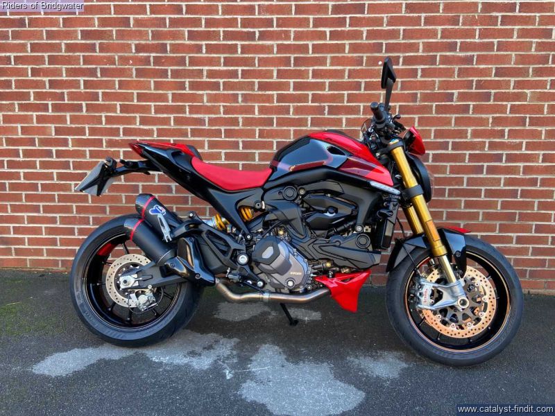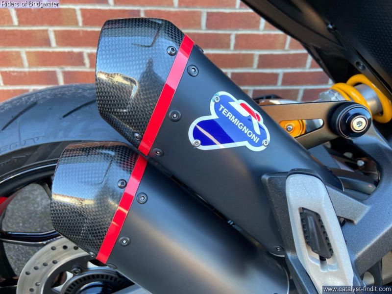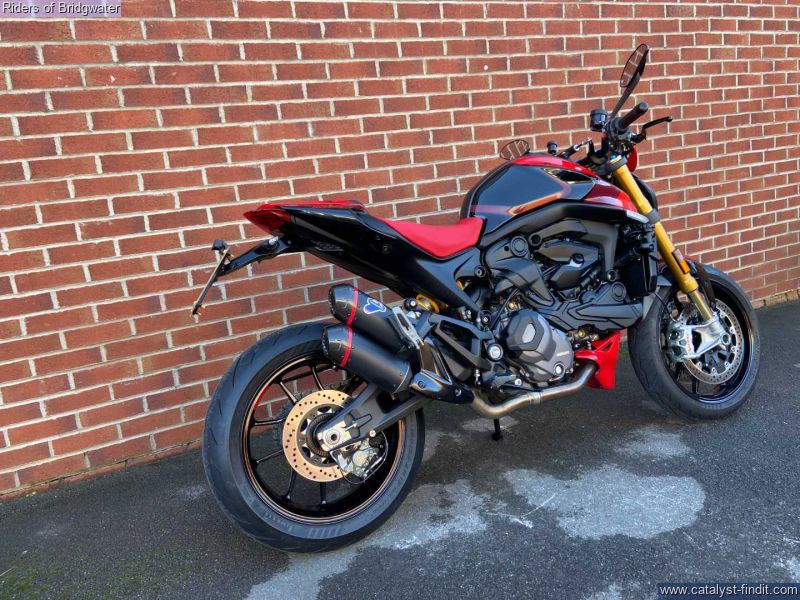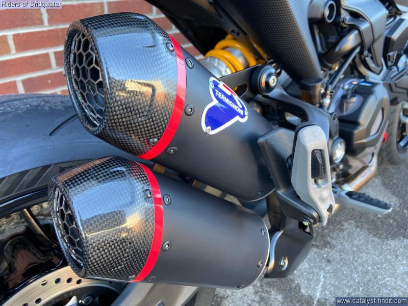 - Great example of the Ducati Monster SP model with its MotoGP apeing colourscheme, Ohlins front & rear suspension, steering damper, traction control, ABS, Brembo brakes & TFT dash. This bike boasts a de-cat link pipe for its Termignoni exhaust, tail-tidy, solo seat cowl & chin spoiler.