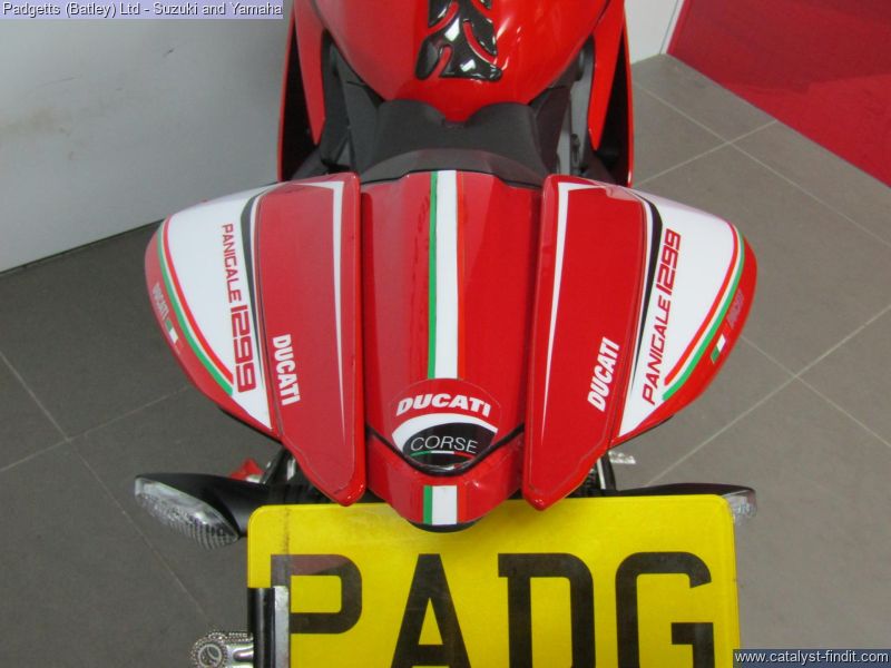- We present here for sale this Ducati 1299 Panigale in Red. The bike has only covered 13,803 miles and is in great condition. The bike has been fitted with some superb extras including: Tail Tidy, Private Plate, Aruba Ducati Decal Kit and Tank Pad. The bike comes complete with Original Owner’s Manual, 2 Keys, Service Book Showing Part-Service History (5 Dealer Stamp – last on 15/02/2024 @ 8,056 miles) and Log book. The bike is available for viewing and is well worth a look. Finance is available and is subject to status. Part Exchanges welcome. Nationwide delivery can be arranged from as little as £75. Usual Dealer Facilities including a Large range of clothing, helmets & accessories. Call Padgett's Motorcycles today to ensure that you don't miss out; Suzuki Sales Centre 01924 609808, Honda Sales Centre 01924 437700 and Yamaha Sales Centre 01924 478491.