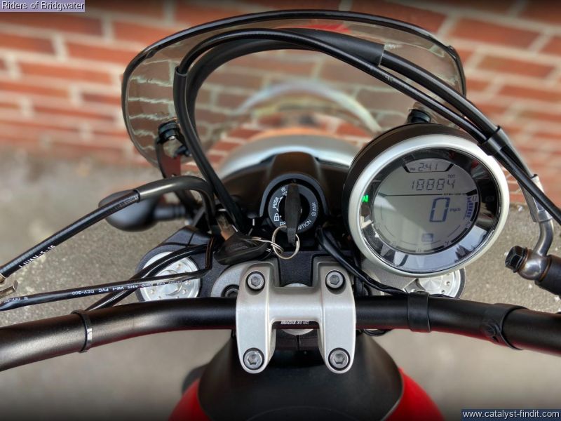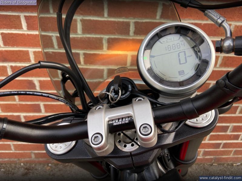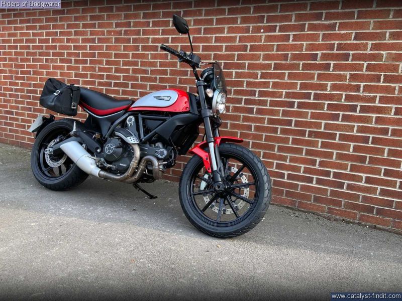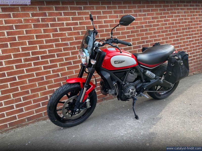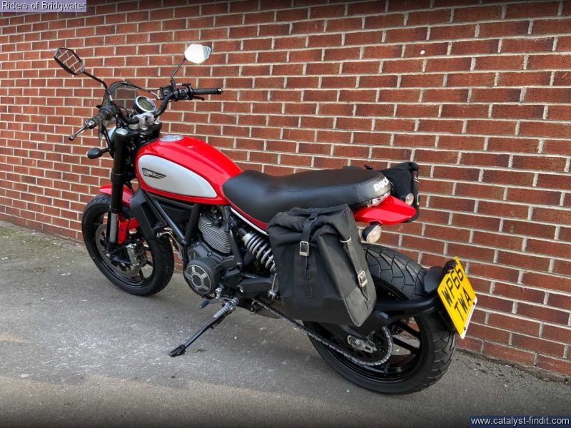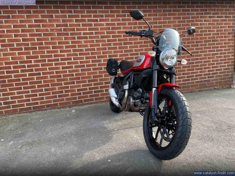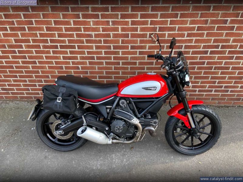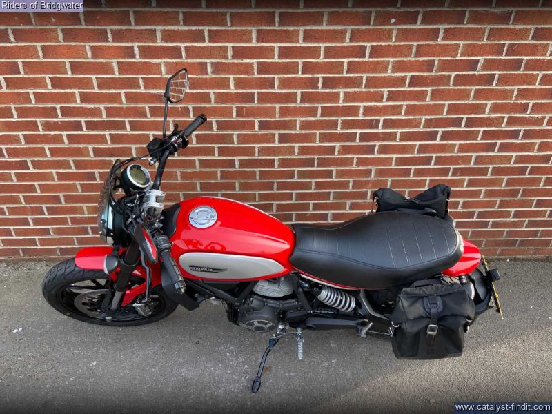 - One owner example of the ever-popular Ducati Scrambler Icon model in red. Perfect for whizzing around town or the lanes with its characterful 803cc air-cooled L-twin engine.