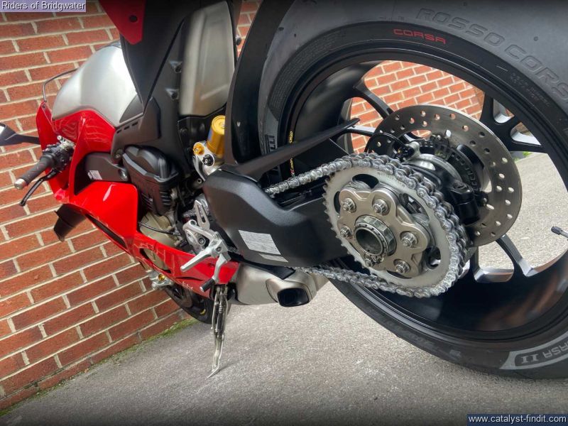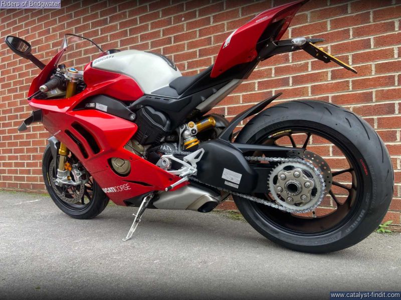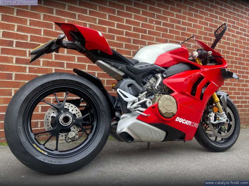 - This is the top-level Panigale V4 model,It’s a fast and exotic Italian-made sportbike, with classic Ducati aerodynamics, a powerful engine, and unrivaled sports performance.The heart of this fearsome Ducati motorcycle is a 998cc Desmosedici Stradale V4 engine. It has a smaller displacement than its stablemates, but it has more power. In fact, in stock from the Panigale V4 R produces a mammoth 221 horsepower, with 83lb-ft of torque.