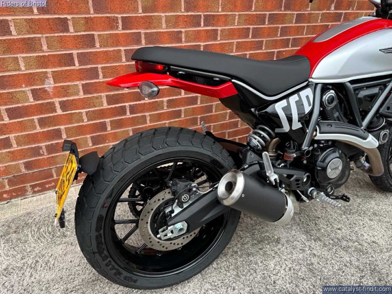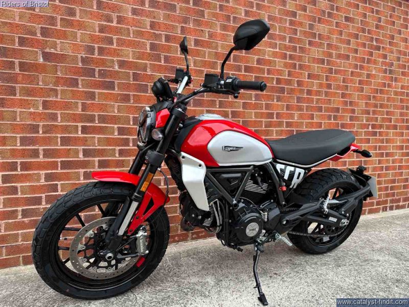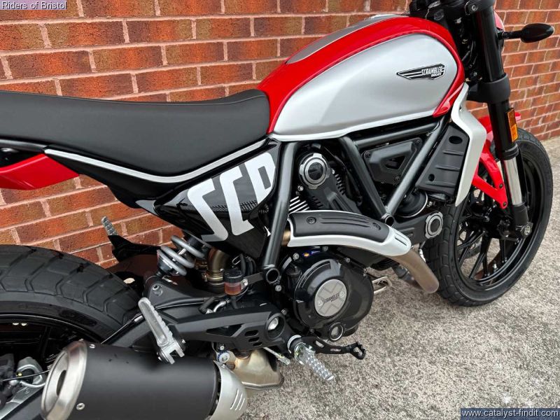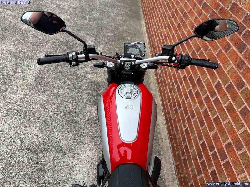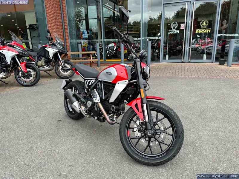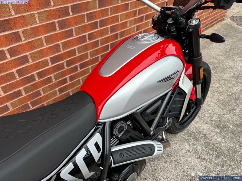 - here is our iconic ex demo scrambler , perfect for those city commutes or fun in the sun , its funky cool and retro all at the same time . This bike is located at our Bristol branch, please contact a member of our sales team on 01179 588777 to arrange a viewing, test ride or for more details.
