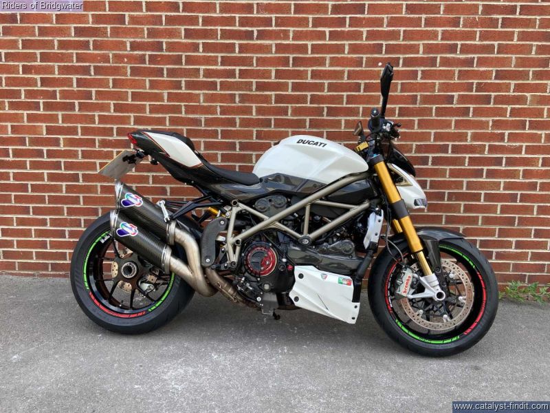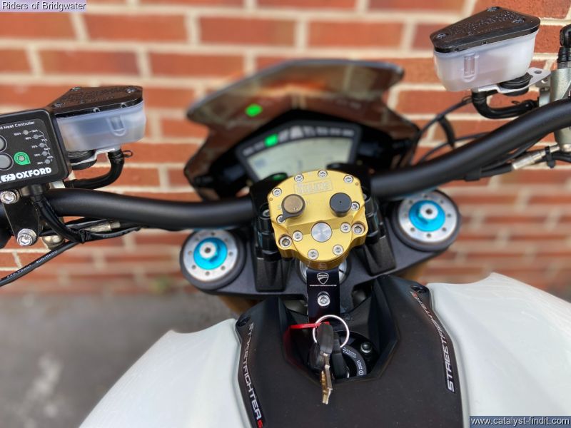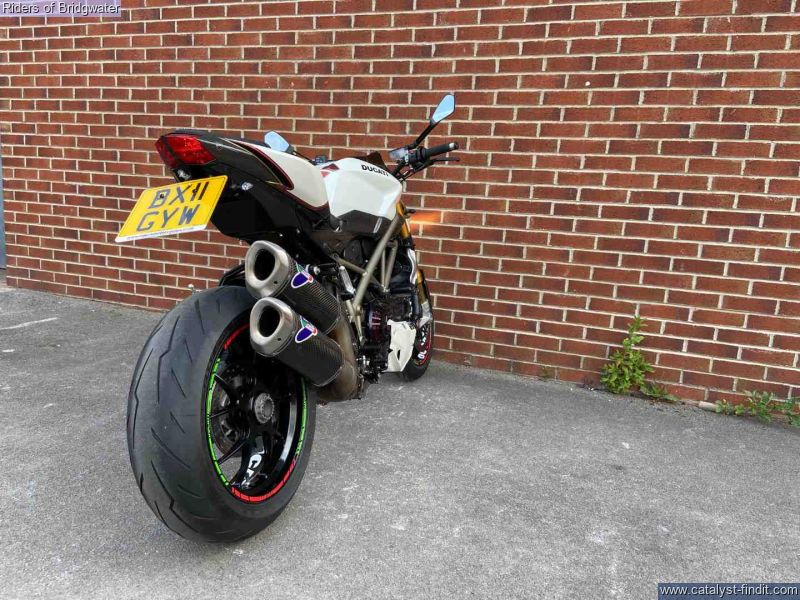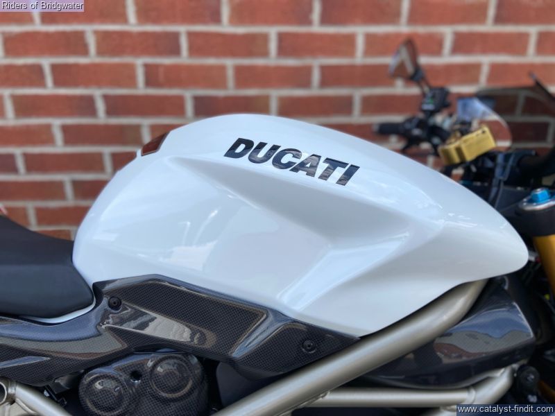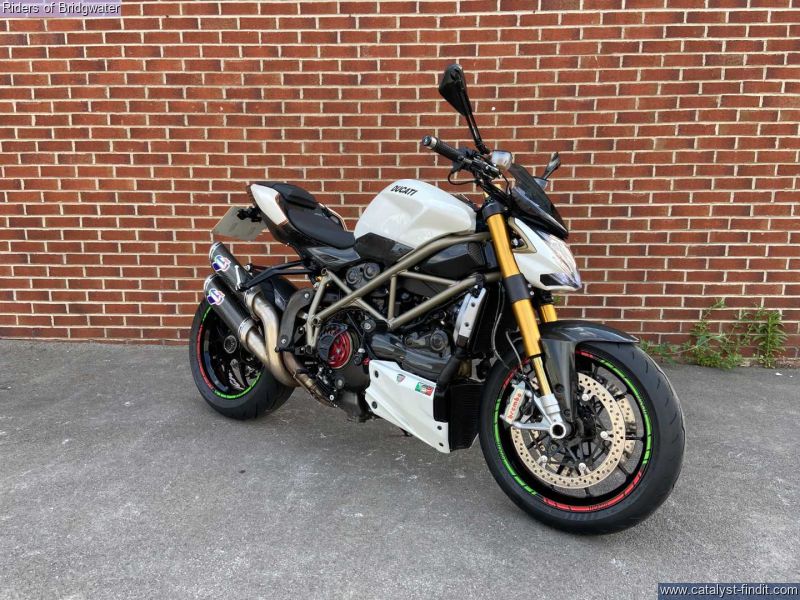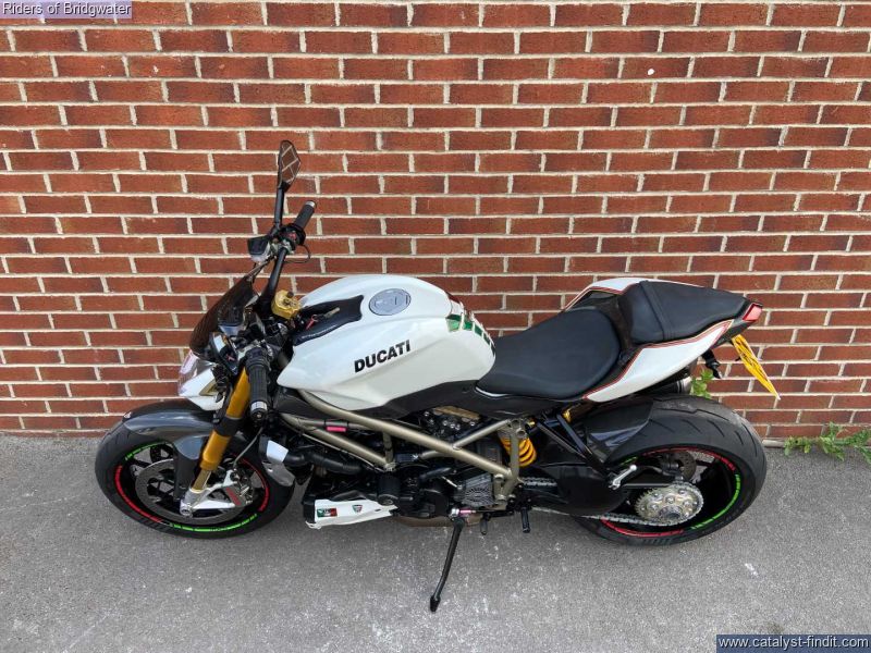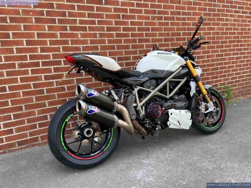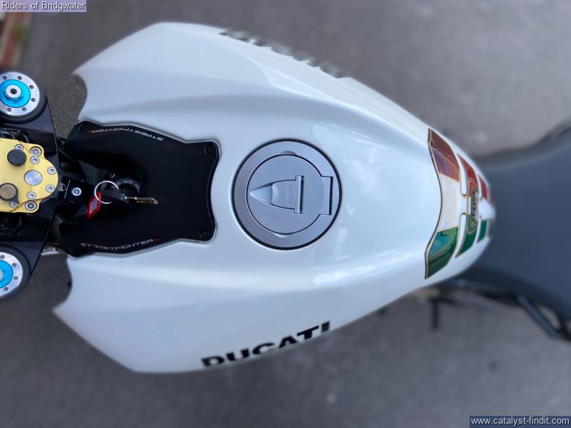 - Ducati Streetfighter 1098 S in white, fitted with Termignoni exhaust, carbon belt covers, carbon air ducts, curbon mudguard and hugger, carbon seat unit, steering damper, tail tidy and heated grips, a great looking muscle bike!