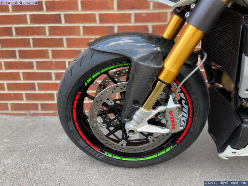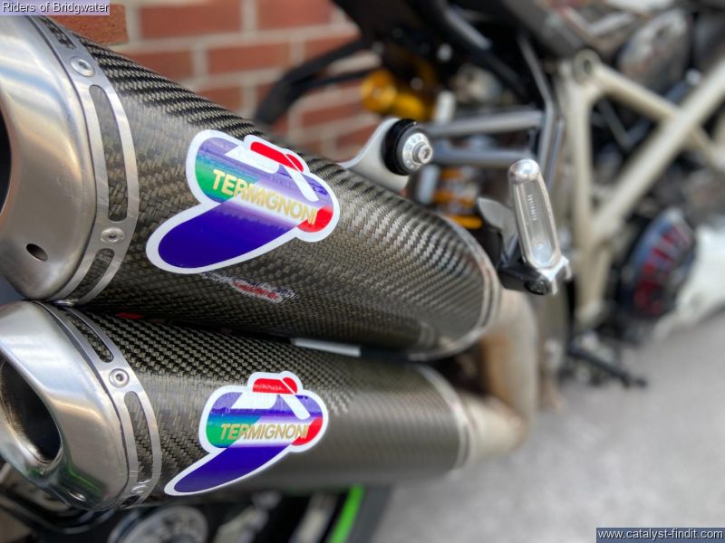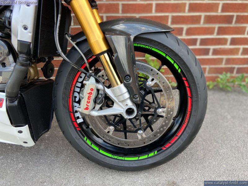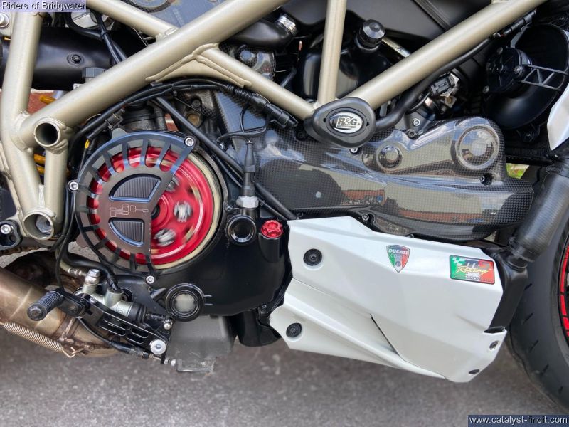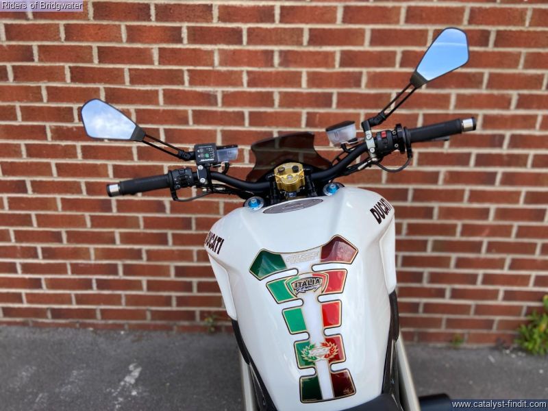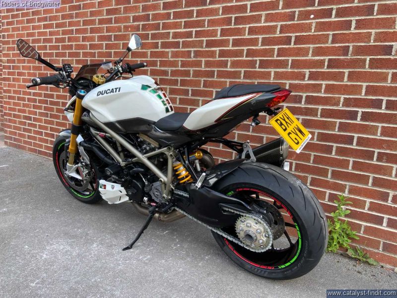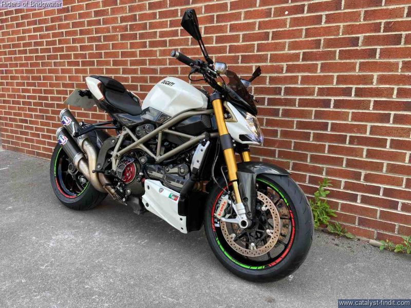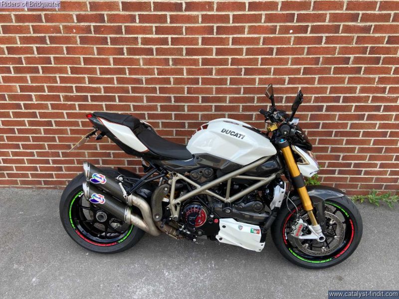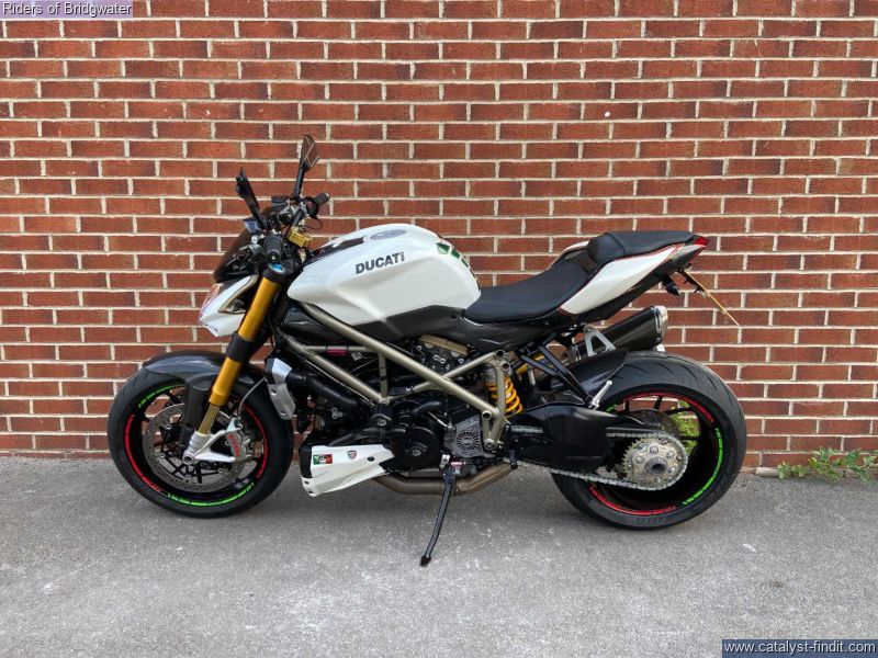 - Ducati Streetfighter 1098 S in white, fitted with Termignoni exhaust, carbon belt covers, carbon air ducts, curbon mudguard and hugger, carbon seat unit, steering damper, tail tidy and heated grips, a great looking muscle bike!