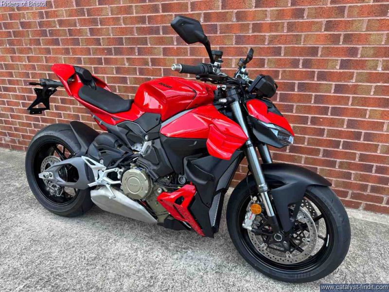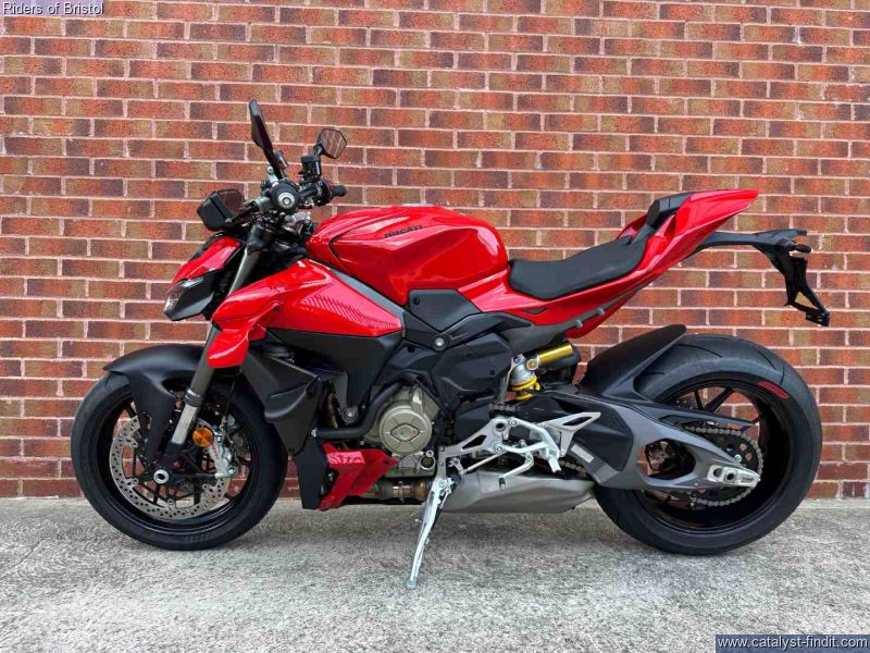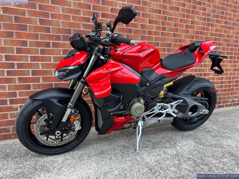 - The new Streetfighter V4 is the result of an explosive formula; the Streetfighter V4, without fairings, with a high handlebar, the 208 HP of the Desmosedici Stradale, and the addition of wings in a biplane configuration to tame the power without losing agility.