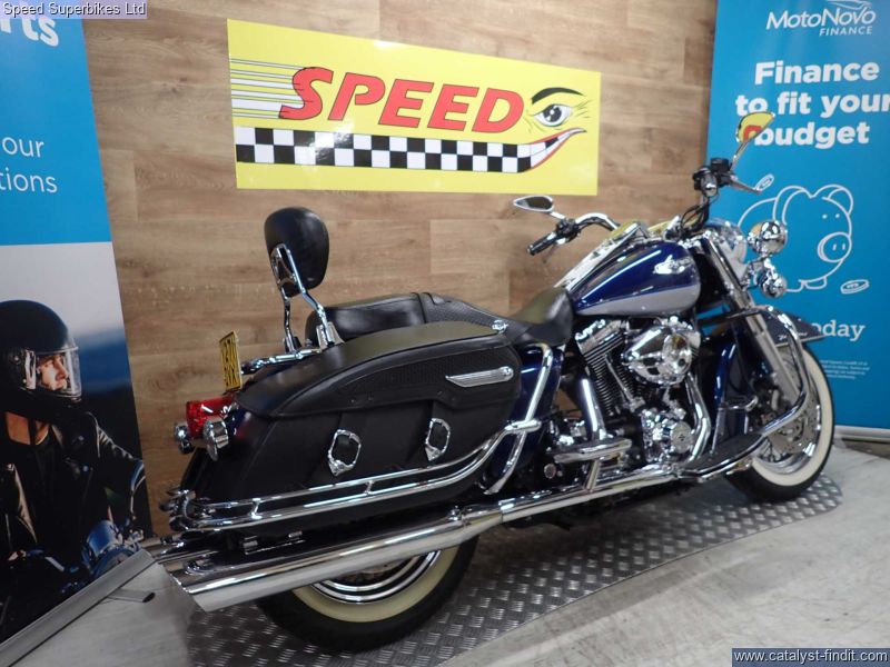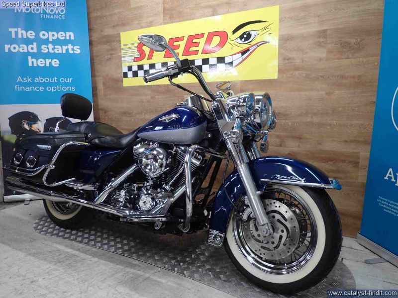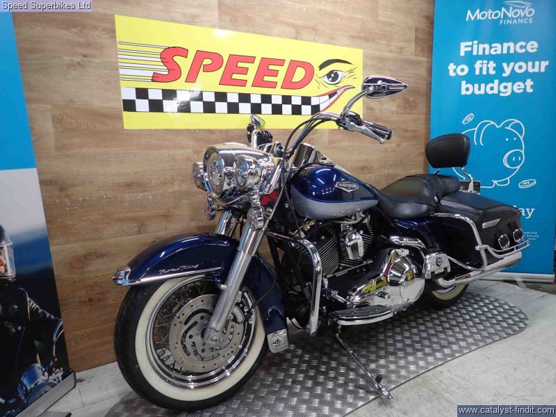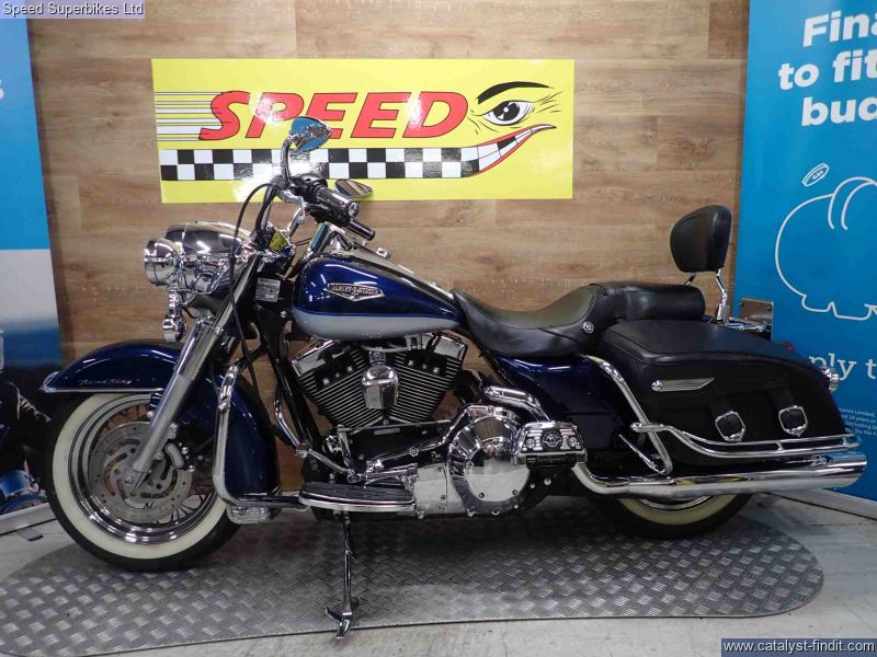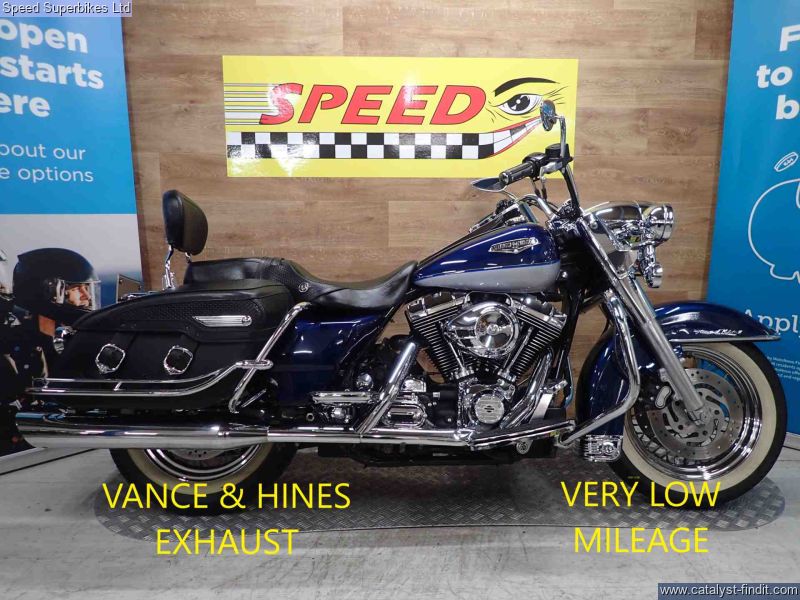 - 2000 Harley Davidson Road King 1450, only 12110 miles on the clock and 5 UK owners, the bike is in great condition and comes fitted with a Vance & Hines exhaust and custom air filter, comes with a CARFAX salvage report HPI clear. For some, the Harley Davidson FLHR Road King is the best Harley of all, mixing the 50s style of the Fat Boy with the versatility and comfort of the Glides thanks to its twin shock chassis and built in panniers and screen. Impressively plush and manageable. With its weight carried low the Road King is refreshingly stable and easy to steer, even at low speed. The ride is smooth and comfortable, too. These bikes will have a safety check with limited warranty. We may not be able to offer finance on these bikes due to age. Delivery in mainland UK available. Part exchange welcome.