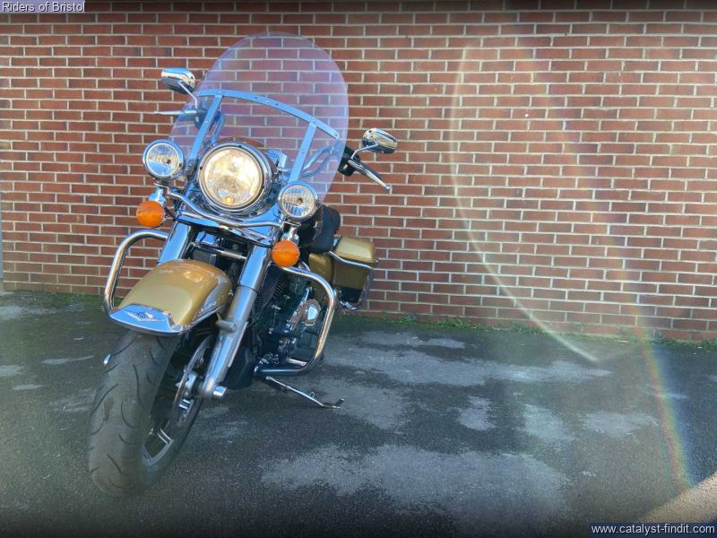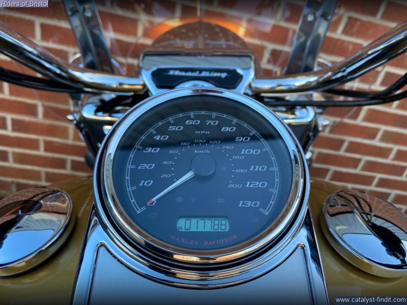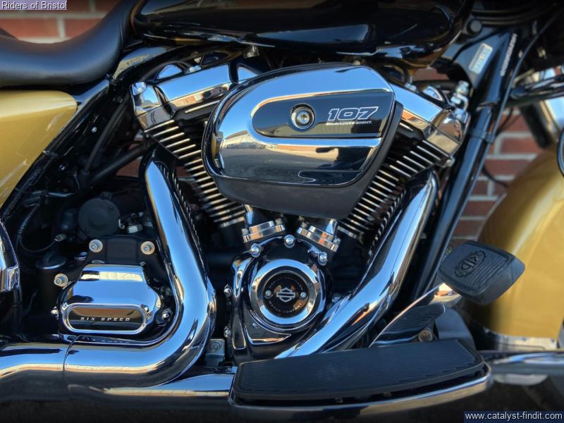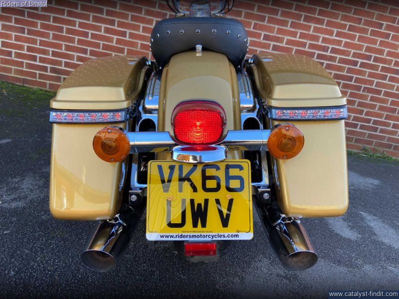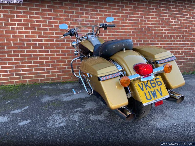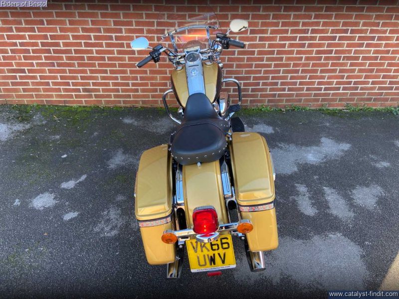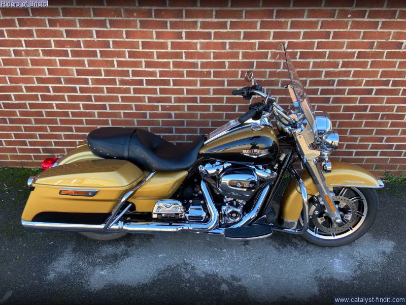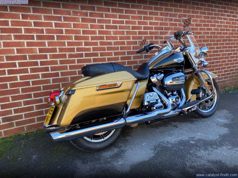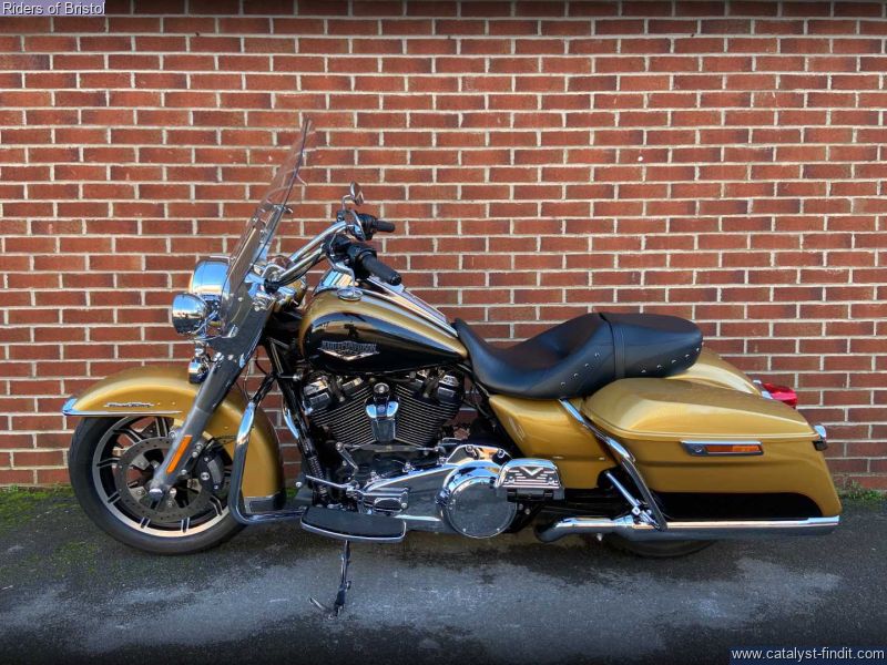 - Harley-Davidson FLHR Road King in gold and black two-tone, 1745cc Milwaukee 8 engine, six speed transmission, heated grips, rear pannier light, a great looking touring machine.