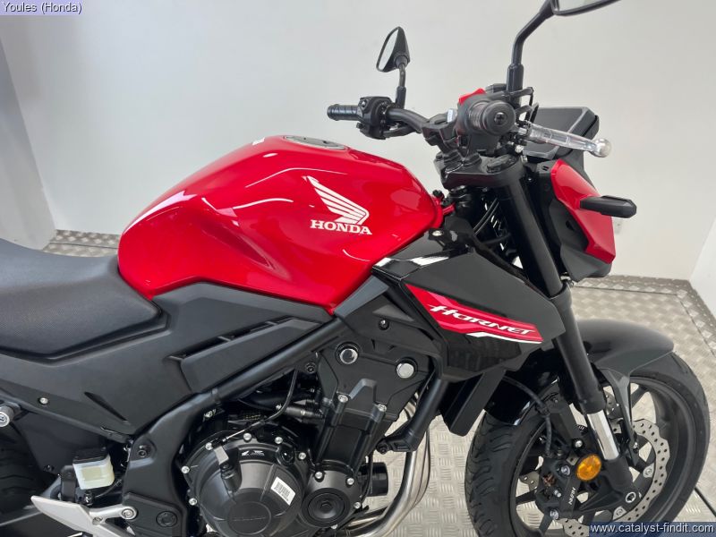 - The iconic Hornet name returns in compact form with the CB500 Hornet, now available in striking Grand Prix Red. This brand-new model delivers a perfect balance of aggressive street styling, lightweight handling, and everyday usability all backed by Honda's legendary reliability. ________________________________________ Key Features: Punchy 471cc twin-cylinder engine A2 licence friendly Sharp, modern streetfighter styling New TFT dash with smartphone connectivity Lightweight chassis for agile handling in the city or twisties Full LED lighting and premium finish throughout Perfect for new riders or experienced commuters ________________________________________ Comes with Hondas 6-year manufacturer warranty for total peace of mind (T&Cs apply) Call Youles Honda Manchester on 0161 527 5020 to reserve yours today Part exchange welcome quick and easy process