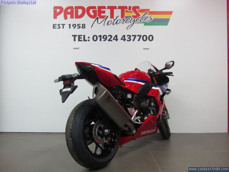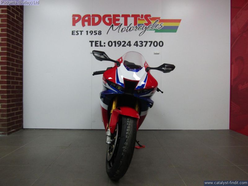 - We present here for sale this 2025 Honda CBR1000RR-R SP. This is why we race. Why we’ve always raced, and it is feedback from HRC and our riders that’s produced the new CBR1000RR-R Fireblade. It’s got more mid-range power from intake and cylinder head upgrades, with revised gearbox ratios for incredible drive out of corners. We’ve maintained peak power, with improved response from Two Motor Throttle By Wire control that makes every rpm count and puts pinpoint throttle precision in your right hand. Weight savings and a finely rebalanced chassis rigidity boost handling and grip feel. Updated fairing winglets maintain downforce with less steering effort at speed and, whether you’re running through bends on a winding road or hitting apexes lap after lap, the new riding position opens up total freedom of control. Made to race? No, born to race. Every ride starts with the full colour 5-inch TFT screen where you set up the Fireblade the way you want it. For precision setup you can now enter your weight to get the perfect spring preload setting, front and rear. And choose from the 3 default riding modes or go fully custom between 5-level Power modes, 9-level HSTC plus 3- level Engine Brake and Wheelie Control. A 3-level Honda Electronic Steering Damper (HESD) maintains high speed stability and new, 3-level ABS Braking now includes Race mode, which turns off ABS for the rear caliper, allowing hard use of the rear brake if required. Another new display feature to protect the engine from cold is the redline point, which slides up from 8,000rpm only when the operating temperature is reached. The bike is available for viewing and is well worth a look. Finance is available and is subject to status. Part Exchanges welcome. Nationwide delivery can be arranged from as little as £75. Usual Dealer Facilities including a Large range of clothing, helmets & accessories. Call Padgett's Motorcycles today to ensure that you don't miss out; Suzuki Sales Centre 01924 609808, Honda Sales Centre 01924 437700 and Yamaha Sales Centre 01924 478491.
