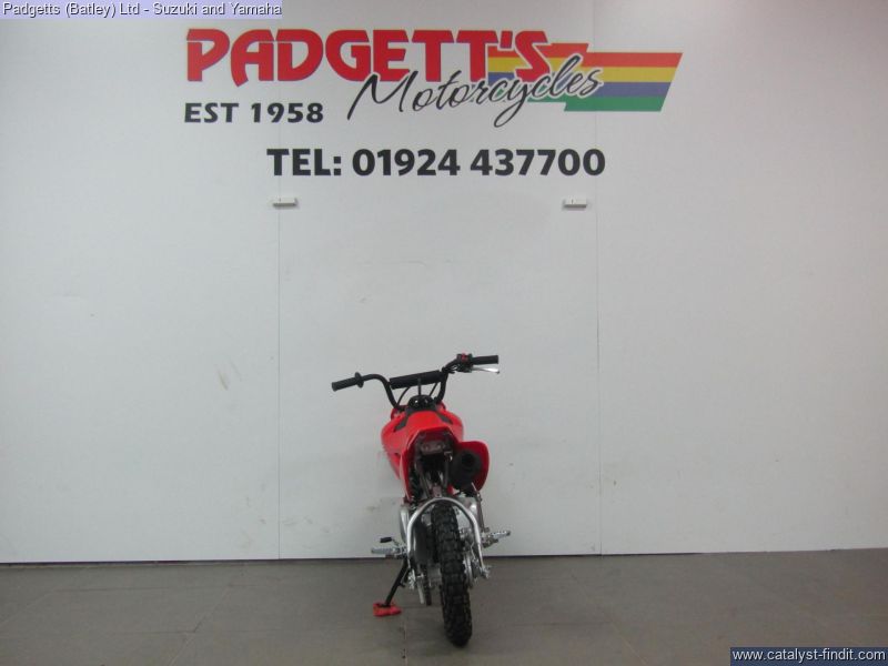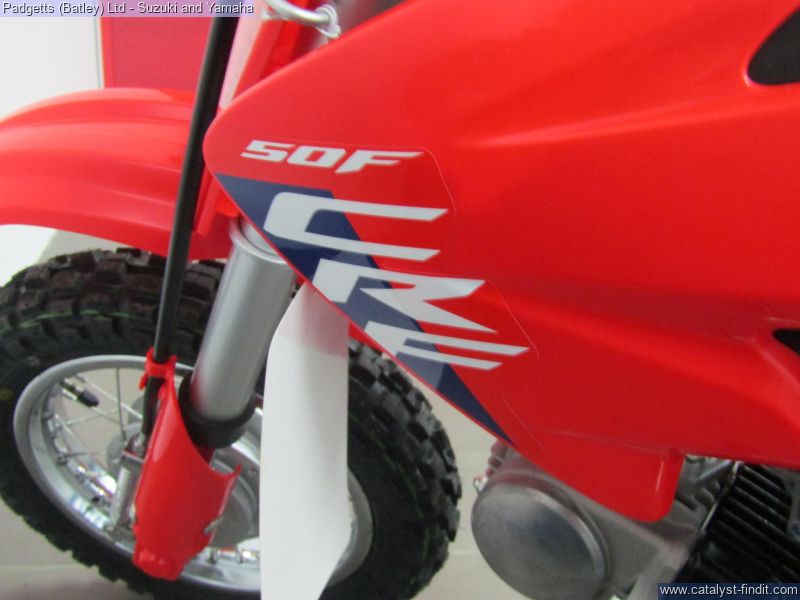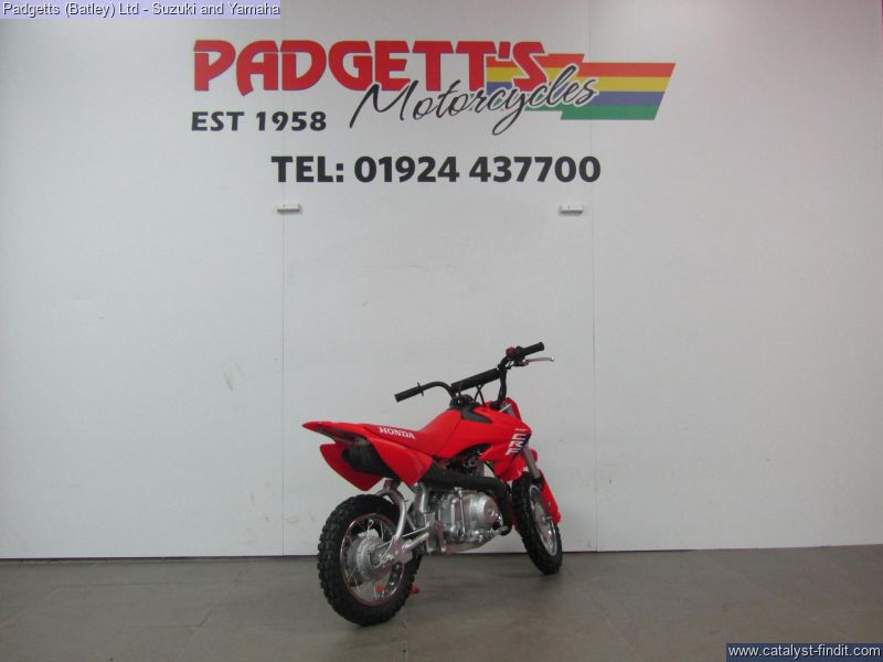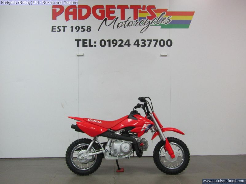 - We present here for sale this 2025 Honda CRF50F. Honda’s longest-running off road model. With its key operated ignition, the CRF50F opens the door to endless thrills and excitement for aspiring young riders. Easy to start, easy to use, and always fun. Widely recognised as the original mini bike, the CRF50F is the choice of first-time riders the world over. Its inverted fork, 49cc engine, easy-shifting gearbox with automatic clutch and low seat height make the CRF50F a cinch to ride. Built strong and solid, with big bike styling and racy new graphics, this CRF will soon have the fun meters of the smallest riders in the family running red - Honda red. A young rider needs confidence from day one. So we’ve made the CRF50F easy for the junior rider to get along with. It’s easy to start, just turn a key and hit the button. It’s easy to ride with a dependable, strong 420 chain and it’s easy to stop with powerful front and rear drum brakes. The CRF50F wears a striking new CRF family paint and bold new graphics to celebrate Honda’s off-road racing pedigree. Twinned with a reliable air-cooled engine powered by a maintenance-free Capacitor Discharge ignition (CDI). There’s no better place to start than here. The bike is available for viewing and is well worth a look. Finance is available and is subject to status. Part Exchanges welcome. Nationwide delivery can be arranged from as little as £75. Usual Dealer facilities including a Large range of clothing, helmets & accessories. Call Padgett's Motorcycles today to ensure that you don't miss out; Suzuki Sales Centre 01924 609808, Honda Sales Centre 01924 437700 and Yamaha Sales Centre 01924 478491.