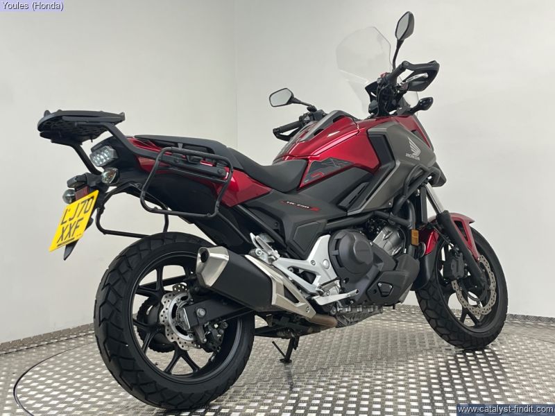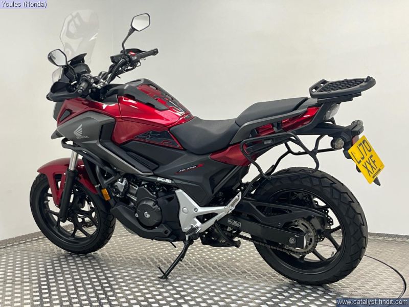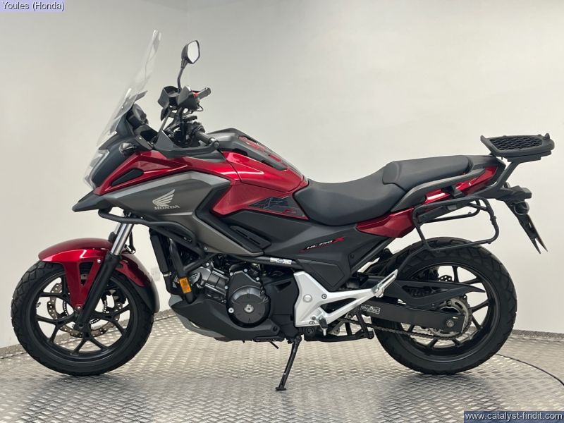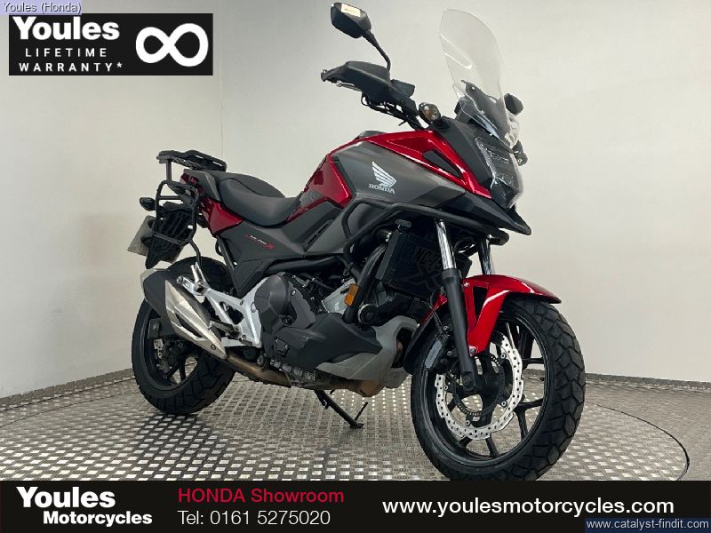 - Now available at Youles Honda Manchester, this stunning Honda NC750X DCT is finished in a beautiful deep red metallic and is a fantastic example of Honda’s renowned all-rounder. Coming on a 70 plate and having covered around 12,000 miles, this bike is in excellent condition and has clearly been very well looked after. (Please note: this bike is currently being used by one of our managers, so please call us for the most up-to-date mileage.) This NC750X comes equipped with a great range of practical extras, making it an even more capable machine for touring or commuting: • Nearly new Continental TKC 70 tyres – excellent all-weather, all-surface performance • Kappa pannier frames and top box rack – ready for your luggage • Heated grips – ideal for year-round riding • Larger touring screen – offering improved wind protection on longer journeys This is a superb opportunity to grab a well-equipped, DCT- equipped NC750X in fantastic condition – a perfect choice for riders seeking comfort, economy, and Honda’s legendary reliability. ?? Call Youles Honda Manchester today on 0161 527 5020 to arrange a viewing or to reserve this great bike before it’s gone! ________________________________________ Why Buy from Youles Honda? All our used bikes receive a 60-point safety check, including an oil and filter change if required and a full MOT. All technicians are factory trained. All bikes are HPI clear. Six months or 4,000 miles warranty, or the remainder of the manufacturer’s warranty. Includes the Youles Lifetime Warranty. Please see our terms and conditions on our website. Cars and bikes of any age or condition taken in part exchange. Nationwide delivery service available. Finance options including Hire Purchase (HP) or Personal Contract Purchase (PCP) with low monthly payments. All used vehicles are subject to a £100.00 document fee.
