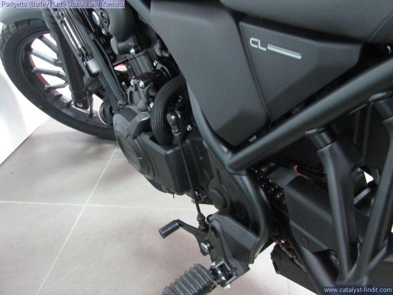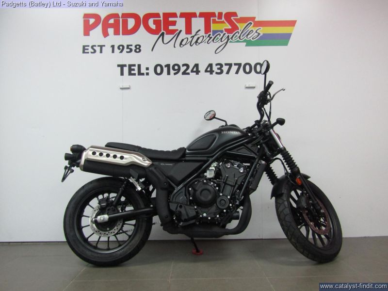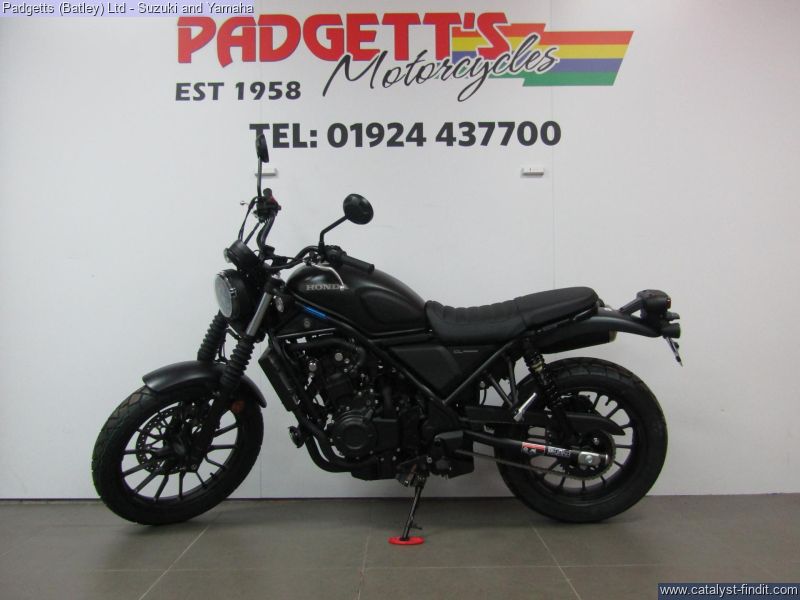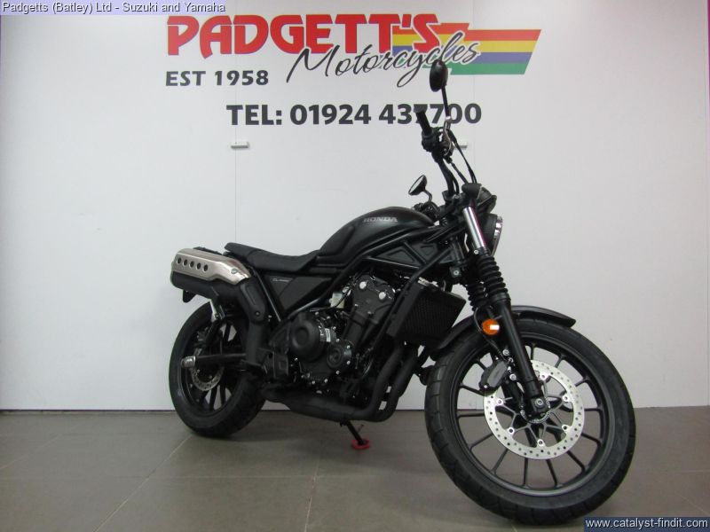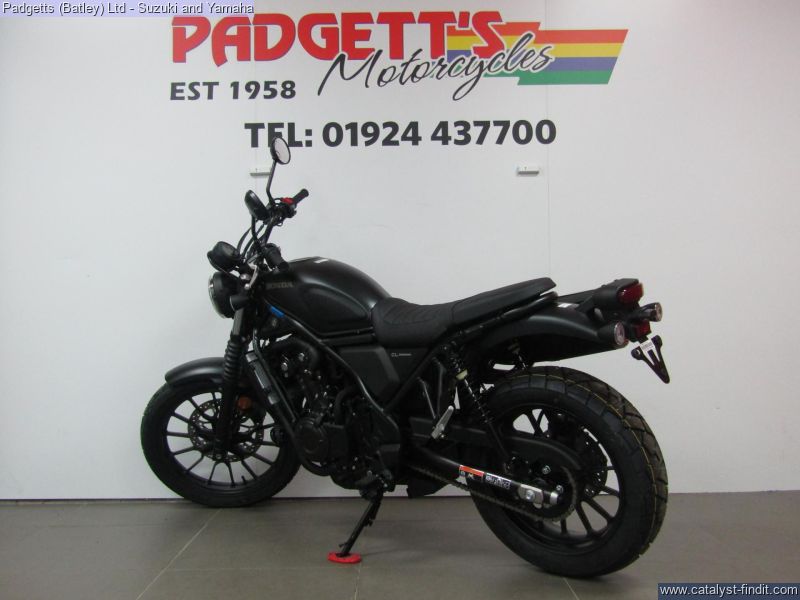 - We present here for sale this Honda CL500. A Reflection of You. Back in 1962 our very first street scrambler, the CL72, made its debut. We figured it was time for a new breed to roll out, made for the streets of today. The new CL500 drips with raw style and detail that only comes with long history. It also packs a strong, A2-compliant twin-cylinder engine into a sturdy, compact chassis and begs to be ridden, customised and enjoyed. Just like the original. Look the Part. Our iconic style starts with the 12L fuel tank; smooth, rounded and perfectly formed, with authentic rubber knee pads for comfort. And everything that can be – engine, frame and suspension – is blacked out for sleek, minimalist looks. Rubber gaiters protect fork legs, just like back in the day. High, wide handlebars give excellent control and, in true CL tradition, mirror the evocative high-level exhaust muffler, with its distinctive drilled stainless heat shield and twin-pipe exit, that sits just right. Stand Out Individuality the Way You Want It. We’ve built the CL500, now you need to make it yours. And that starts with colour; choose between vibrant Candy Orange or Blue Metallic, ultra-modern Matte Gunpowder Black or rugged, earth-toned Matte Green. What else? That’s up to you. Maybe start with the simple pleasure of riding, meeting friends, hanging out and talking bikes. You’ll find what you need and want for your CL500. It will evolve around you, just as it should and become the motorcycle you dream of. More than lifestyle, this is living. Built Ready To Ride. The CL500 is built to handle whatever you’ve got from dirt roads, cobbled city streets or weekends away. Longer travel suspension soaks up the bumps and deep-grooved tyres ensure confidence from walking speed upwards. Seat height is 790mm and the mid- section slim, great for easy ground reach and low-speed manoeuvrability. There’s plenty of leg room (a taller seat is available as an optional accessory) while the pillion seat mounts low, for easy access. Strong Torque Equals Instant Response. Whether just starting your two-wheeled journey – or have been riding for years – you’ll love this engine. Parallel twin-cylinder, DOHC 4V and spinning a 180° crank, it’s so easy to use at low speed, with smooth throttle response, easy-going power delivery and soulful sound. And, thanks to street scrambler-specification intake, exhaust and gearing there’s strong torque all the way through the rev-range – with peak of 43.4Nm @ 6,250rpm – which equals acceleration, when needed, that even the most experienced will enjoy. The bike is available for viewing and is well worth a look. Finance is available and is subject to status. Part Exchanges welcome. Nationwide delivery can be arranged from as little as £75. Usual Dealer facilities including a Large range of clothing, helmets & accessories. Call Padgett's Motorcycles today to ensure that you don't miss out; Suzuki Sales Centre 01924 609808, Honda Sales Centre 01924 437700 and Yamaha Sales Centre 01924 478491.
