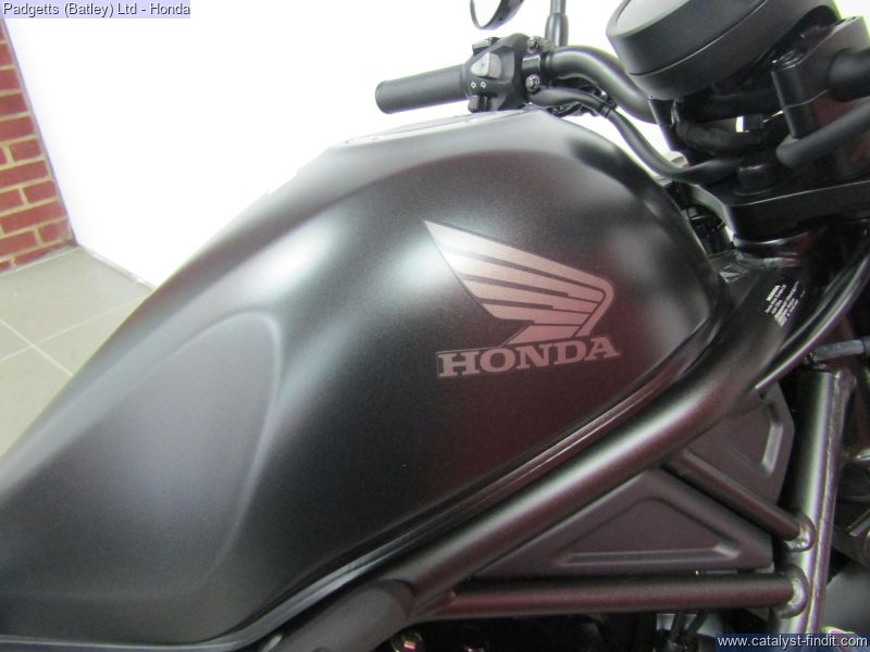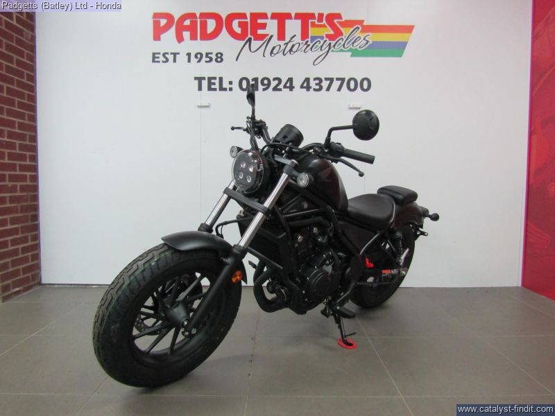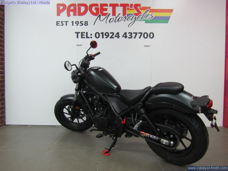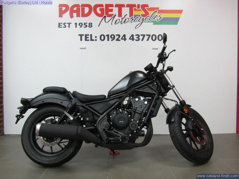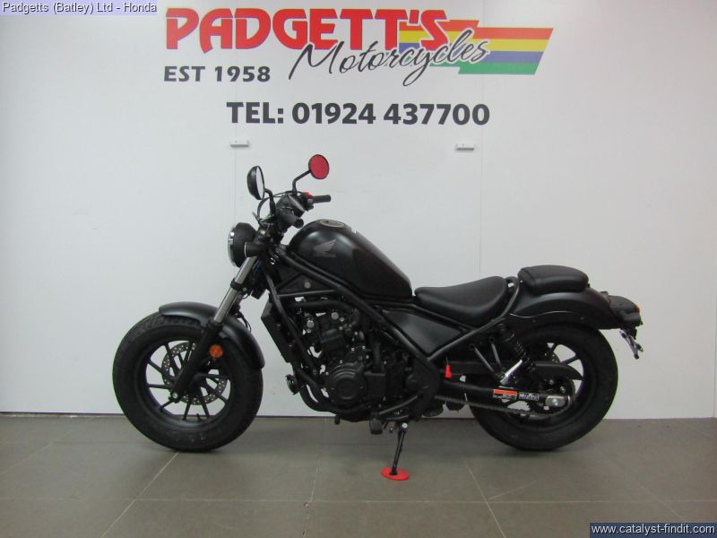 - We present here for sale this Honda CMX500S Rebel. FEEL FREE. Make your mark on it. The CMX500 Rebel is all about freedom for all motorcyclists, particularly A2 licence holders. With a strong, liquid-cooled, parallel twin- cylinder engine cradled in low chassis and updated suspension, lighting, comfort and instruments, it’s a stunning looking bike – a blank canvas – and one that’s ready for whatever your imagination has in store for it. The Rebel takes a different road. Powered by a proven parallel twin-cylinder engine, the response is friendly, smooth and linear – ideal if you're stepping up from a smaller bike. Thanks to a new exhaust, it’s also now EURO5 compliant, while the addition of an assist-and-slipper clutch aids gearchanges with a 30% lighter lever feel. The riding position is relaxed as you sit, arms outstretched, into the low seat height, ready for the highway. Even at low speed, the Rebel remains comfortable and easy to manage. The bike is available for viewing and is well worth a look. Finance is available and is subject to status. Part Exchanges welcome. Nationwide delivery can be arranged from as little as £75. Usual Dealer facilities including a Large range of clothing, helmets & accessories. Call Padgett's Motorcycles today to ensure that you don't miss out; Suzuki Sales Centre 01924 609808, Honda Sales Centre 01924 437700 and Yamaha Sales Centre 01924 478491.