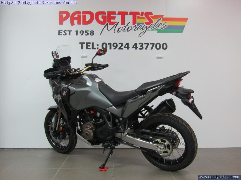 - WE PRESENT HERE FOR SALE THIS HONDA CRF1100 ADVENTURE SPORT 2025.TAKE YOUR ADVENTURE ON TOUR. When you’re in the saddle all day, day after day, little things can be a big deal. In redesigning the Africa Twin Adventure Sports, we’ve focussed on comfort, because that big fuel tank will take you a long way. The expanded front fairing offers extended wind protection, while the height-adjustable screen reduces helmet buffeting. And to improve safety, the new dual LED headlights feature Daytime Running Lights (DRL) for consistent daytime visibility. They also incorporate Cornering Lights which – dependent on speed and lean angle – automatically illuminate corner blind spots. Heated grips warm hands while cruise control deals with large distances; there’s also an ACC charging socket. And tubeless tyres mean easy roadside repairs. FULLY LOADED FOR THE LONG-HAUL. Time to explore? There’s no better partner for your travels, wherever the road leads. We’ve readied the Africa Twin Adventure Sports with practical features to help you go long. Really long. And it’s also packed with technology in support of your journey. Like the Africa Twin it has four pre-set riding modes and two customisable user modes, dynamic Inertial Measurement Unit (IMU) control, HSTC, Cornering ABS and Wheelie Control all easily managed through the TFT touch screen, with Apple CarPlay® and Bluetooth connectivity also at your fingertips. Optional SHOWA EERA™ suspension. When you come to choose your new Africa Twin Adventure Sports – and because who knows where the open road’s going to lead – there’s the option of SHOWA ELECTRONICALLY EQUIPPED RIDE ADJUSTMENT (SHOWA EERA™) for optimum suspension settings all the time. Three pre-set modes cover all scenarios between touring, city and off-road riding. Rear spring preload can also be adjusted electronically while stationary to suit load, whether riding solo or with pillion and luggage. The Africa Twin Adventure Sports is the perfect package for the long haul. Engineered for comfort as well as performance the front fairing protects while the height-adjustable screen lets you tailor airflow. The 24.8L fuel tank gives greater autonomy, while the large engine skid-plate plate and premium aluminium panels protect the machine. When you’re loaded, with passenger and luggage, you need an engine that responds strongly to every input, especially for passing. So we’ve tuned an extra 5Kw/5Nm of peak power and torque into the parallel twin-cylinder powerplant and lifted performance throughout the rev-range. A new cylinder head, throttle body and ECU deliver precise throttle control. Optimum suspension settings, all the time. It’s not just a theory. Optional SHOWA EERA™ manages damping force relative to mode selection and a dedicated suspension ECU draws real-time information from front and rear stroke sensors, IMU and Cornering ABS. Rear spring preload can also be adjusted electronically while stationary to suit load. Engage with the journey. A full-colour 6.5-inch TFT touch-screen offers immersive selection of riding modes and easy control of navigation and Bluetooth smartphone/audio connectivity. Apple CarPlay® allows seamless mirroring and management of iPhone apps or calls via the touch screen. The new dual LED headlight delivers a penetrating beam and also features dual Daytime Running Lights (DRL) that automatically adjust to ambient light intensity and give a bright, highly visible light improving safety. Additional Cornering Lights use speed and lean angle to automatically illuminate blind spots when cornering in the dark. The bike is available for viewing and is well worth a look. Finance is available and is subject to status. Nationwide delivery can be arranged from as little as £60. Usual Dealer facilities including a Large range of clothing, helmets & accessories. Call Padgett’s Motorcycles today to ensure that you don’t miss out, 01924 478491 or 01924 437700.