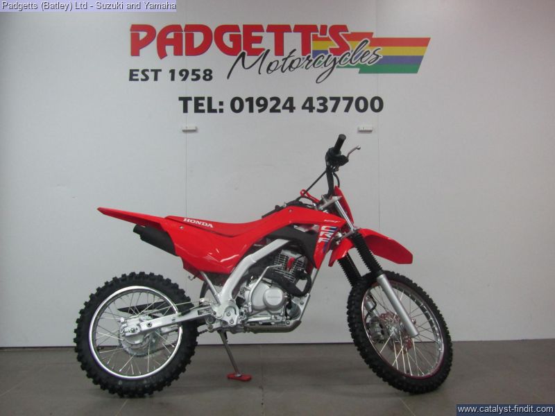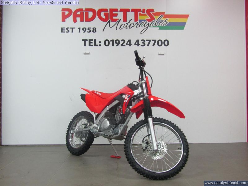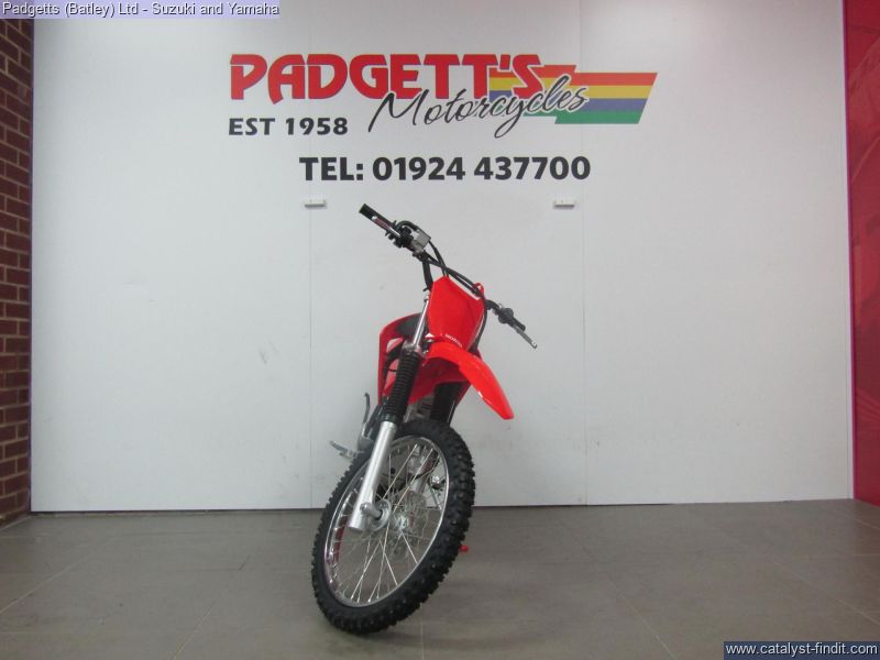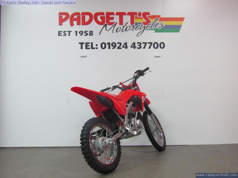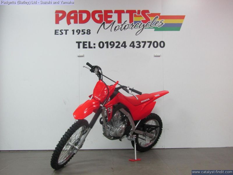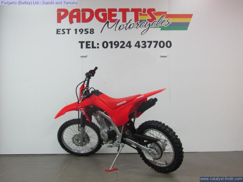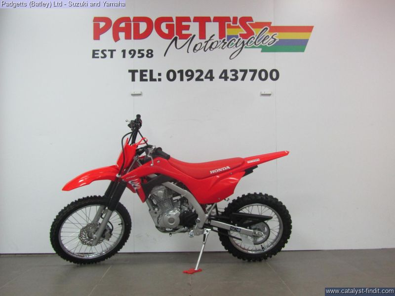 - We present here for sale this 2025 Honda CRF125FB. We’ve got some big guns in our CRF-MX line up and the CRF125F is proud to line up next to them. The perfect entry bike for young riders aged 10, or over, who are looking for fun and a bike to feed their off-road passion. On the CRF125F, young riders can progress to more adventurous riding, safely. With a suspension system built around a beefy 31mm telescopic fork and heavy weight springs, the bike is perfect for soaking up the forces from a jump. The rear shock has a 32mm diameter piston damper with separate air/oil/gas pressure chambers to reduce emulsification and maintenance. The CRF125F’s sharply-styled and durable body kit gives it a crisp and modern appearance, just like the mighty CRF450R. For 25YM, the CRF125F wears a striking new CRF family paint and bold new graphics to celebrate Honda’s off-road racing pedigree. The bike is available for viewing and is well worth a look. Finance is available and is subject to status. Part Exchanges welcome. Nationwide delivery can be arranged from as little as £75. Usual Dealer facilities including a Large range of clothing, helmets & accessories. Call Padgett's Motorcycles today to ensure that you don't miss out; Suzuki Sales Centre 01924 609808, Honda Sales Centre 01924 437700 and Yamaha Sales Centre 01924 478491.