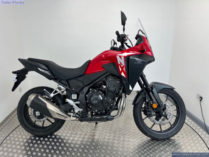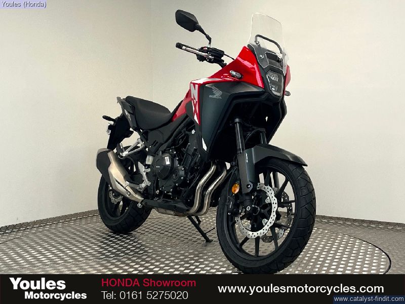 - Introducing the all-new Honda NX500 – the next- generation middleweight adventure bike, now available at Youles Honda Manchester in stunning Red. Built for riders who want versatility, style, and everyday usability, the NX500 blends agile handling with rugged design, making it equally at home in the city or off the beaten track. Powered by Honda’s proven 471cc parallel twin engine and featuring a new TFT dash, Honda RoadSync connectivity, and refined ergonomics, the NX500 is perfect for daily commutes, weekend escapes, and everything in between. ________________________________________ Key Features: • 471cc parallel-twin engine – smooth, reliable, and A2 licence compatible • Striking Red adventure styling with a tough and modern edge • Lightweight chassis with long-travel suspension – great on all roads • 5-inch TFT display with Honda RoadSync – connect your phone for navigation and media • Full LED lighting, USB-C charging port, and practical wind protection • Comfortable upright riding position – ideal for city and touring use ________________________________________ Be among the first to experience Honda’s latest adventure machine. Whether you're stepping up from a smaller bike or looking for a lightweight, capable tourer, the NX500 delivers confidence, comfort, and character. Covered by Honda’s all new 6-year warranty Now available at Youles Honda Manchester Call us today on 0161 527 5020 to reserve your brand new NX500 Part exchange welcome – contact us for a competitive quote