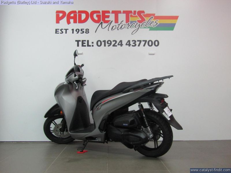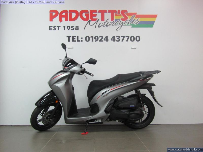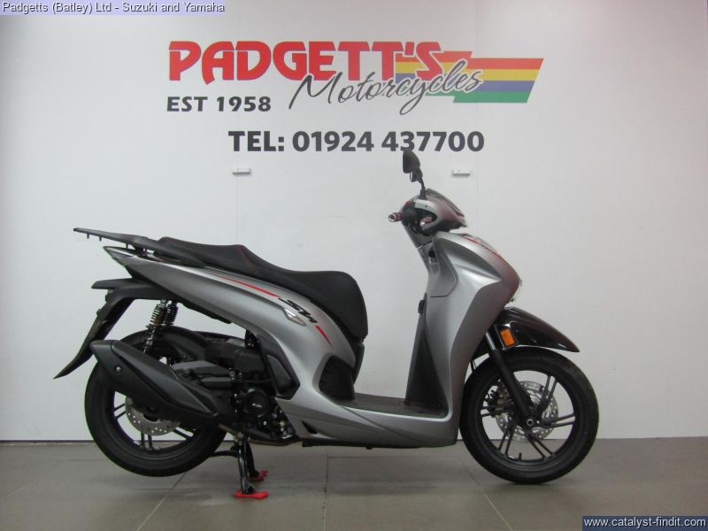 - We present here for sale this Honda SH350i. Our SH scooters are icons of the two-wheeled world and have worked for decades to provide easy, convenient transport for legions of owners around Europe. Their class-leading, premium performance is founded on reliable, strong engines, the practicality of a flat floor and stability that large, 16- inch diameter wheels deliver. And it’s all clothed in the timeless, compact and identifiably SH style. The new SH350i tops the range and defines our ultimate SH – and everything that means. It’s got more power thanks to a larger capacity, liquid-cooled 4V engine, upping traffic-beating acceleration – from a standstill or while moving – and increasing highway speed. And, while the SH style has always mixed beautiful form and function, the SH350i elevates its desirability skywards, blending elegance, premium feel and technological prowess. A redesigned frame maintains the easy handling that’s another SH signature, while details like USB charging socket and Smart Key enhance day-to-day ease. SLEEK, SMART AND SOPHISTICATED. Three words that encapsulate the SH350i. Sleek, slim all-new bodywork wraps the redesigned tubular steel frame beneath and supports the easy-to-use, practical flat floor that sets all SH scooters apart. The riding position is comfortable, upright and relaxed, and suitable for a variety of rider heights. The SH350i helps you ride smart thanks to its new engine, which means you can get more done, around town, and go further, faster out on the open highway. Sophisticated design details are everywhere, and combine to help your day go smoothly. Convenience is provided by the Smart Key, which can be stored in a pocket and operates the ignition and seat, as well as the optional Smart top box. There’s room for a full-face helmet under the comfortable seat, where you’ll find a USB Type-C charging socket ready to plug straight into. All lighting, including indicators, has been redesigned in crisply efficient LED form, and the attractive new LCD dash provides clearly displayed information, to get you where you need to be. The bike is available for viewing and is well worth a look. Finance is available and is subject to status. Nationwide delivery can be arranged from as little as £60. Usual Dealer facilities including a Large range of clothing, helmets & accessories. Call Padgett's Motorcycles today to ensure that you don't miss out; Suzuki Sales Centre 01924 609808, Honda Sales Centre 01924 437700 and Yamaha Sales Centre 01924 478491.