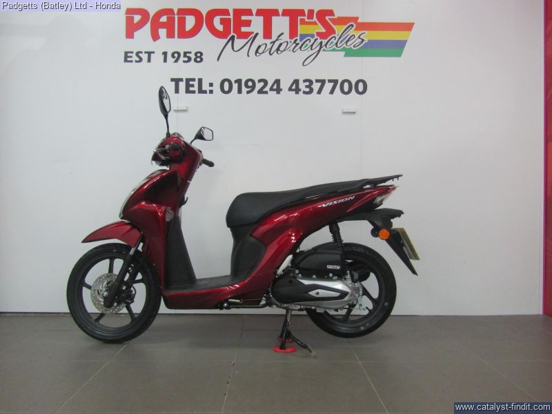 - We present here for sale this 2025 Vision 110. If you need to get quickly from one part of town to another, this stylish and affordable scooter is made for you. It doesn’t just take on traffic, it cuts through it. The relaxed riding position is comfortable, offering a great view of what’s going on around you, while the flat floor is practical. All-new, the Vision 110 is more economical to run and full of premium features that you’ll enjoy with every ride. And, while it may represent straightforward, simple transport, the Vision 110 is so much more when it comes to all-round performance. We get it. Choosing a scooter on a budget can be a little confusing. So we’ve made it easy and engineered the new Vision 110 to give you everything you need, and more. Its sharply redesigned bodywork incorporates more storage room under the seat and an intuitive LCD dash. There’s also the added convenience of Smart Key operation. A next-generation steel frame allows for lighter handling and a new, even more efficient enhanced Smart Power (eSP) engine saves you more money at the filling station. The Vision 110 has the build quality and many of the features you’d expect to find on a premium scooter, at a price point that’s hard to ignore. The bike is available for viewing and is well worth a look. Finance is available and is subject to status. Nationwide delivery can be arranged from as little as £60. Usual Dealer facilities including a Large range of clothing, helmets & accessories. Call Padgett's Motorcycles today to ensure that you don't miss out; Suzuki Sales Centre 01924 609808, Honda Sales Centre 01924 437700 and Yamaha Sales Centre 01924 478491. PLUS £81 OTR FEES