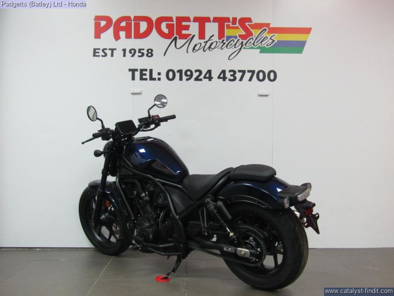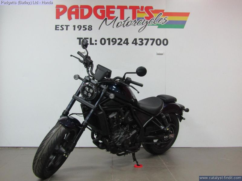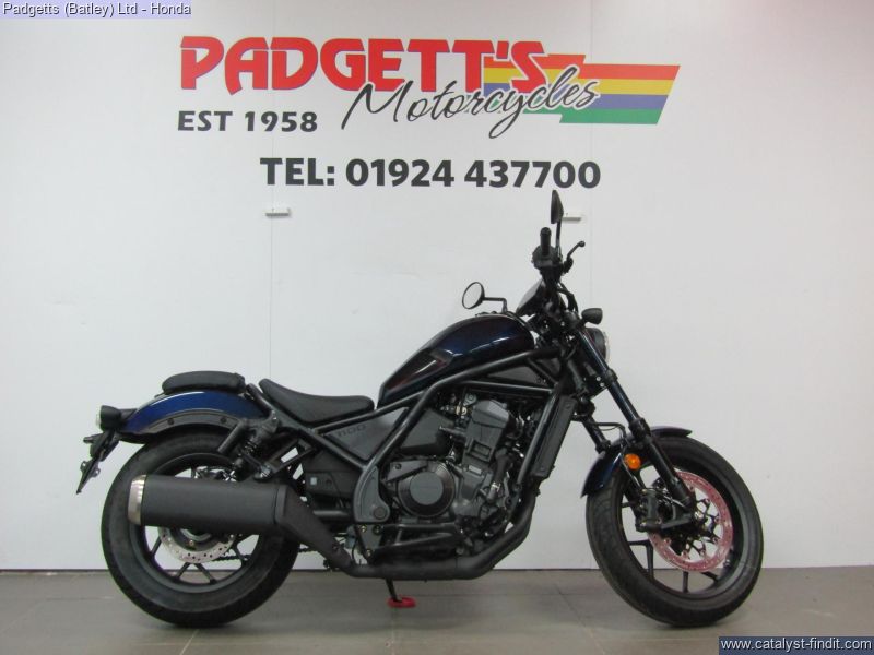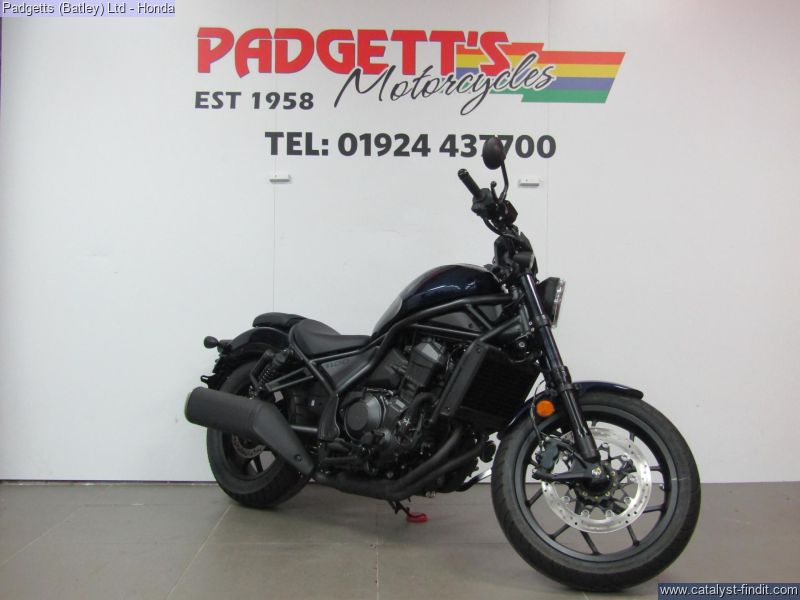 - We present here for sale this Honda CMX1100 MANUAL. Ready to upgrade your current ride? Then it’s time. Time for something completely new. Step up to the new Rebel CMX1100. A bare-boned motorcycle that pays homage to the fat-tyred ‘bobber’ silhouette of days gone by, but lays down contemporary design details everywhere. Sure, it’s one great looking bike, and will casually cruise an open boulevard. But, by design, it’s so much more than that. The Rebel CMX1100 is something special… With its individual looks – as well as easy, nimble handling and fun engine response – riders, many new to two wheels, have enjoyed and customised the Rebel CMX500 the world over. But now’s the moment for more. The family resemblance is instant, but the Rebel CMX1100 has a great deal going on. The torquey, characterful parallel twin-cylinder engine features Throttle By Wire management, 4 riding modes, Honda Selectable Torque Control and Wheelie Control. Cruise control is standard and our unique, six-speed Dual Clutch Transmission an option. And this cool cruiser is also made for corners – 43mm cartridge-style front forks, piggyback rear shocks and a radial-mount four-piston front brake caliper see to that. The Rebel CMX1100 is built for the pure pleasure that two wheels bring, a blacked-out 21st century roadster-meets- bobber, designed from the ground-up to be an engaging, enjoyable ride, with engine and handling performance potential to spare. Every detail makes it different; the flangeless fuel tank features two-tone paint, both front and rear mudguards are drawn from 1mm-thick steel and mount with die-cast aluminium brackets. Seat height is just 700mm, and the soft-density material contoured to give support under hard acceleration. An offset, 120mm diameter negative digital display offers intuitive information delivery while wide, uncluttered handlebars mount with substantial, 1-inch clamps. The bike is available for viewing and is well worth a look. Finance is available and is subject to status. Nationwide delivery can be arranged from as little as £60. Usual Dealer facilities including a Large range of clothing, helmets & accessories. Call Padgett's Motorcycles today to ensure that you don't miss out; Suzuki Sales Centre 01924 609808, Honda Sales Centre 01924 437700 and Yamaha Sales Centre 01924 478491. PLUS £172 OTR FEES