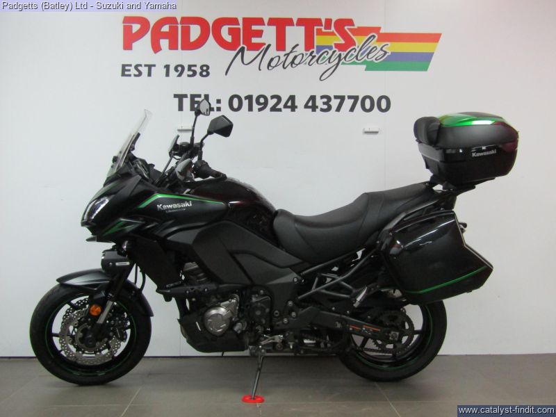 - We present here for sale this Kawasaki Versys 1000 GT in Black. The bike has only covered 18,007 miles and is in great condition. The bike has been fitted with some superb extras including: Genuine Kawasaki Top Box, Genuine Kawasaki Top Box, Genuine Kawasaki Fog Lights, Genuine Kawasaki Main Stand, Custom Seats, Frame Sliders, Tank Pad Sides and Tank Pad. The bike comes complete with Original Owner’s Manual, 2 Keys, Service Book Showing Full-Service History (7 Dealer Stamp – last in May-2025 @ 15,960 miles) and Log book and is Datatag’ed. The bike is available for viewing and is well worth a look. Finance is available and is subject to status. Part Exchanges welcome. Nationwide delivery can be arranged from as little as £75. Usual Dealer Facilities including a Large range of clothing, helmets & accessories. Call Padgett's Motorcycles today to ensure that you don't miss out; Suzuki Sales Centre 01924 609808, Honda Sales Centre 01924 437700 and Yamaha Sales Centre 01924 478491.