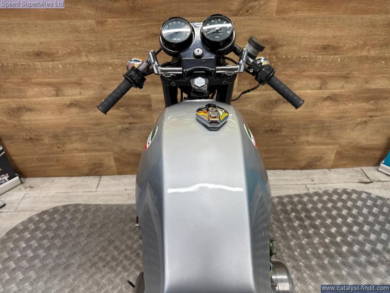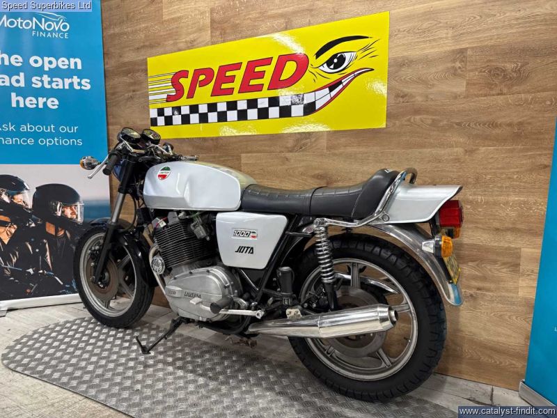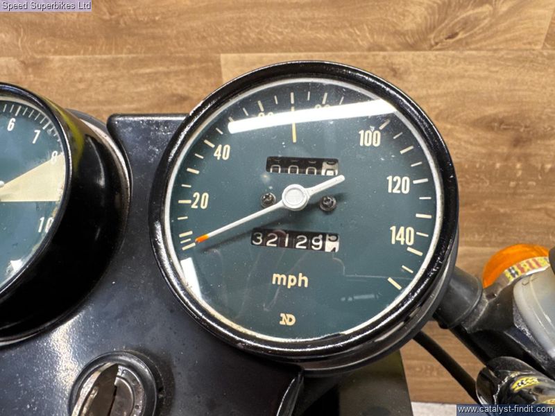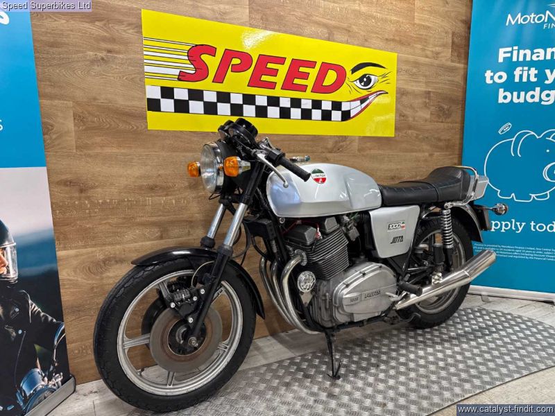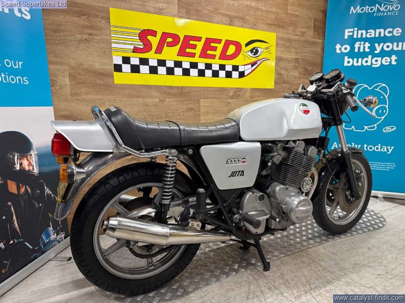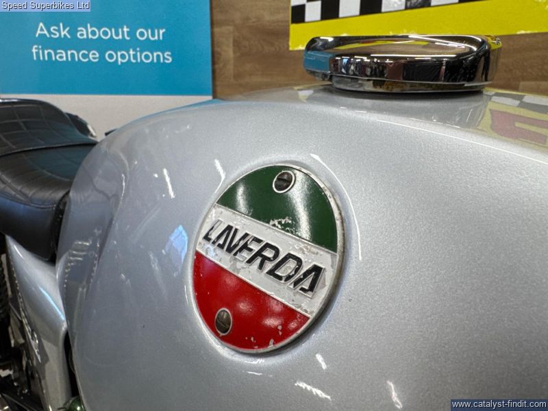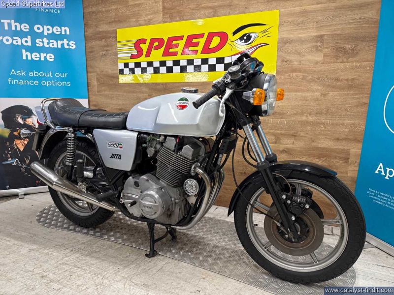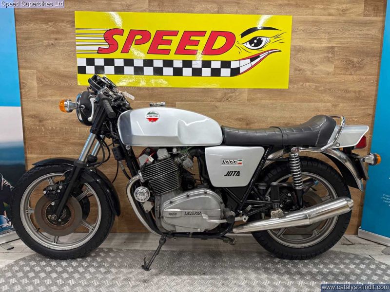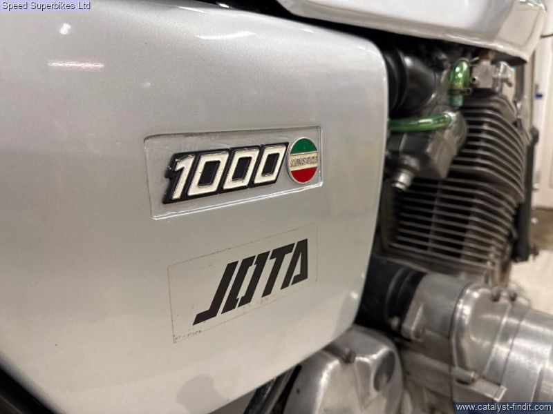 - 1977 Laverda Jota 1000, UK bike, 32129 miles on the clock and 9 owners, the bike is in good condition. The bike has been unused for a number of years so will require recommissioning before being ridden on the road. In 1973 Laverda entered the emerging superbike class with a new 981cc inline three cylinder engine, which it considered to be an ideal compromise between the lighter weight but lower output of a parallel twin and the increased weight, width but higher output of an inline four. The handsome Italian triple also featured chain driven dual overhead camshafts and a 180 degree flat plane crankshaft which gave this engine its unique exhaust note and pulsating character. This brings us to the sublime Jota 1000 here. It’s arguably the most iconic of all models produced during the Laverda family's heyday, if you are looking for a true iconic Italian classic superbike, this could be the bike for you. These bikes will have a safety check with limited warranty. We may not be able to offer finance on these bikes due to age. Delivery in mainland UK available. Part exchange welcome. Customers must satisfy themselves as to the provenance, condition, age, completeness and originality prior to purchase.