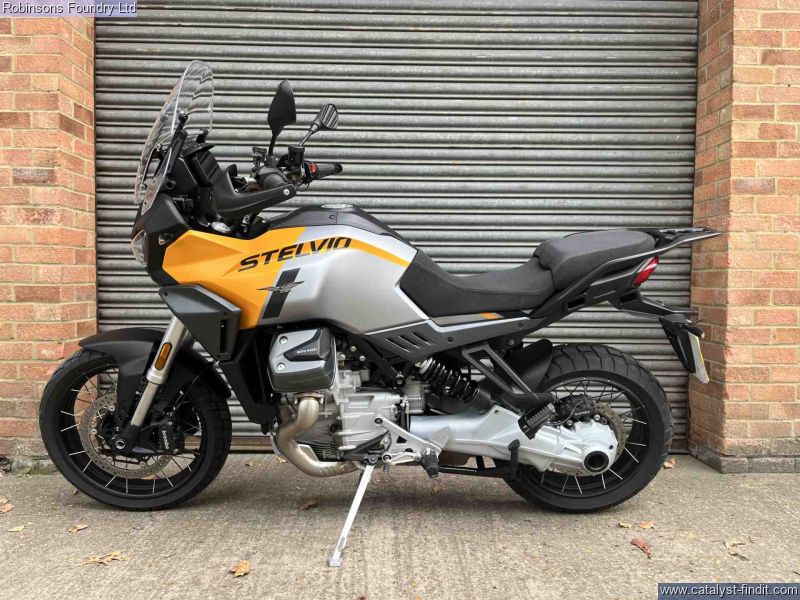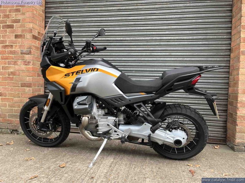 - The 2024 Moto Guzzi Stelvio is a next-generation adventure tourer that blends Italian style, advanced technology, and all-terrain capability into one versatile machine. Powered by the new 1,042cc liquid-cooled 90° V-twin engine with a 270° crank, it delivers smooth, torque-rich performance and a characterful riding experience on both tarmac and gravel. Built on a robust steel frame with long-travel suspension, a 19-inch front wheel, and generous ground clearance, the Stelvio is designed to handle long-distance touring and off-road exploration with ease. A 21-litre fuel tank provides impressive range, while a full suite of rider aids including cornering ABS, traction control, cruise control, multiple riding modes, and a 5-inch TFT display with Moto Guzzi’s MIA connectivity system ensure comfort, confidence, and convenience on every ride. Practicality is enhanced with tubeless spoked wheels, integrated luggage mounting points, and adjustable ergonomics, making it a genuine do-it-all adventure bike. With its distinctive Moto Guzzi styling, shaft drive reliability, and a reputation for character and durability, the 2024 Stelvio is ready for riders who want to take on any horizon in comfort and style.All vehicles are subject to a comprehensive pre delivery inspection prior to collection and come with a minimum of 6 months MOT and 3 months/3000 mile warranty (subject to T&Cs).Walkaround videos and delivery available upon request Lowrate finance available from just £99 deposit. (T&C's Apply)We are the South Easts premier Moto Guzzi retailer so if youdo not see what you are after then do not hesitate to call.