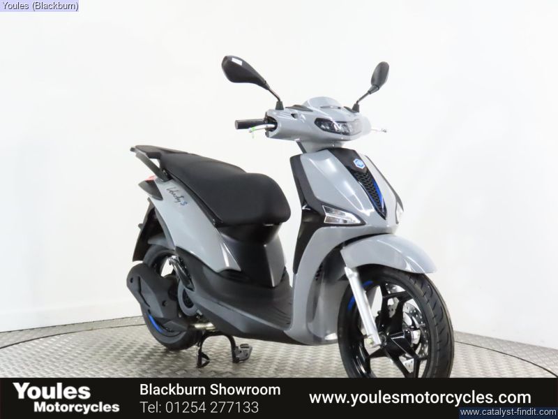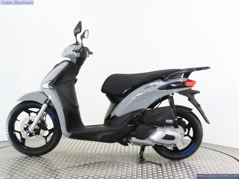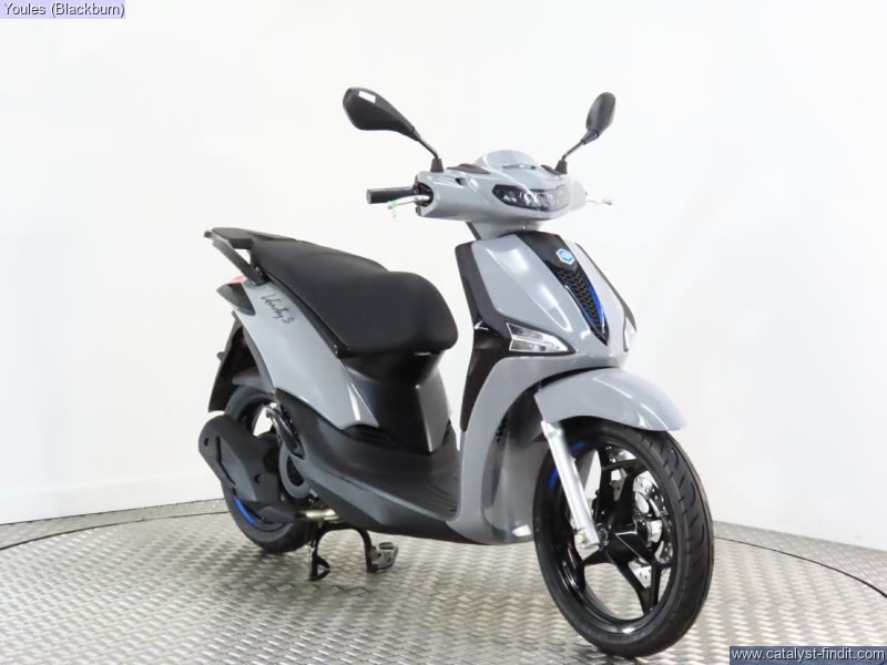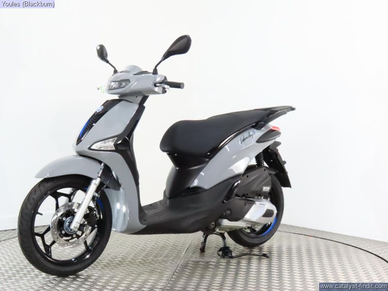 - The bold personality of the Piaggio Liberty S is expressed in its no-nonsense colourways, but it’s the details that truly make the difference. Glossy black adorns the trim details, tail light frame, indicator frames and logo, while shiny blue accents showcase the shield’s “tie” and the dark split three-spoke wheels. The modern horizontal LED headlight and honeycomb grille on the central tie lend a decisive look to the front end while remaining faithful to the pleasingly gentle style synonymous with the Piaggio Liberty.
