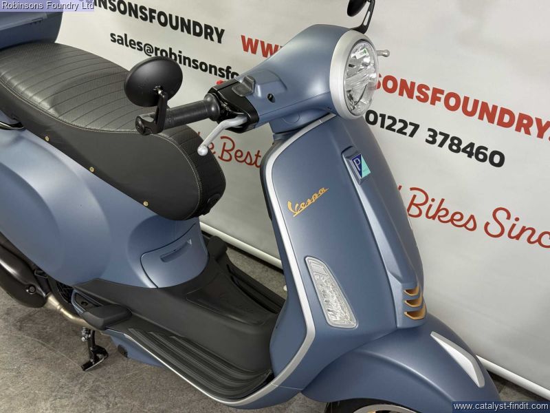 - The Vespa Primavera Officina 8 reinterprets Vespa’s heritage with elegance and a contemporary spirit. The intense blue livery is inspired by the industrial machinery found in the historic Officina 8 workshop of the Piaggio factory. A homage to tradition, transformed into a distinctive symbol of strength and identity. The metal details, polished brass rivets and contrast stitching on the saddle are testament to the ingenuity, care and passion Vespa has forever displayed.Walkaround videos and delivery available upon request. Finance available from just £100 deposit. (T&C's Apply) We are the South Easts premier Piaggio Group retailer so if you don't see what you are looking for then don't hesitate to call.