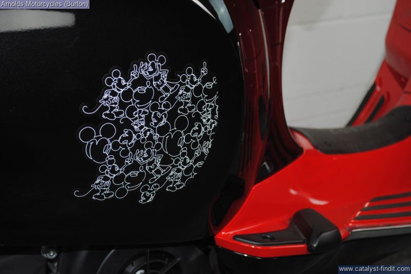 - Get ready to ride in style with the 2024 Vespa Primavera Walt Disney 125, a truly rare gem for any Mickey Mouse fan! This stunning scooter features exclusive Mickey Mouse graphics and an embossed signature on the seat, making it a must-have for collectors and enthusiasts alike. With a pre- registered status and never used, it’s practically brand new and comes with a fantastic saving of over £1000 off the retail price. Don’t miss your chance to own this unique piece of art on wheels!