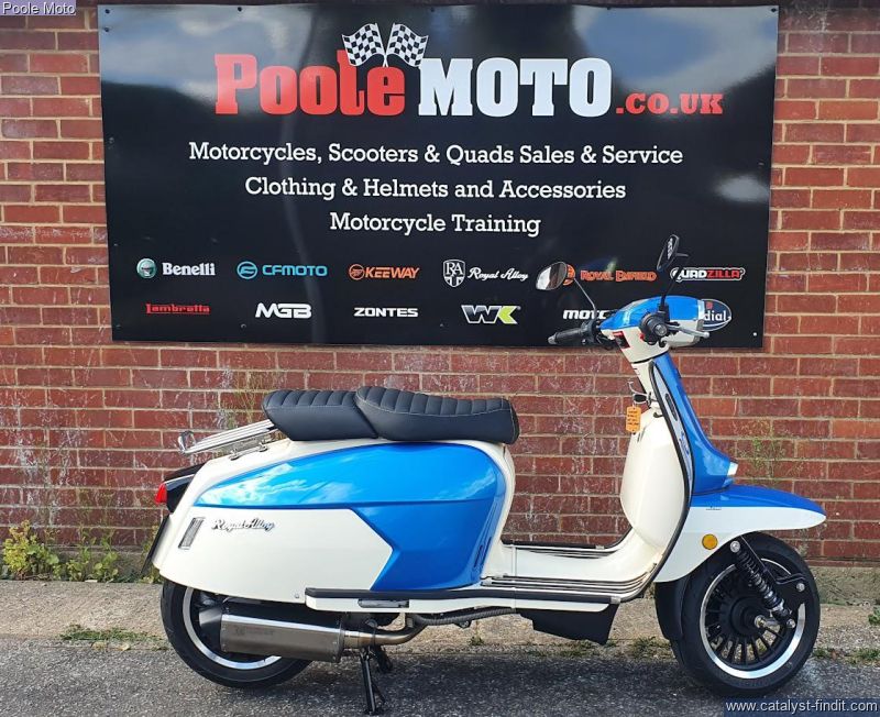 - Pre-registered "74" plate. Royal Alloy GP series a real retro scootering a truly authentic retro scooter made of steel that respectfully nods towards the Lambretta designs of the past but with all the added benefits of modern technology and equipment.