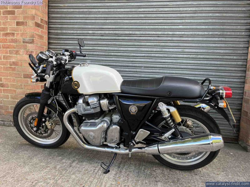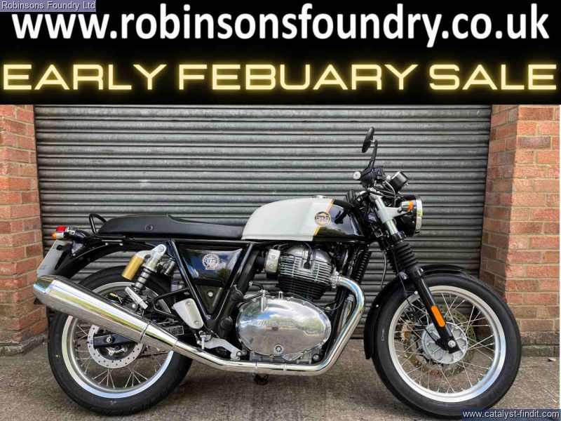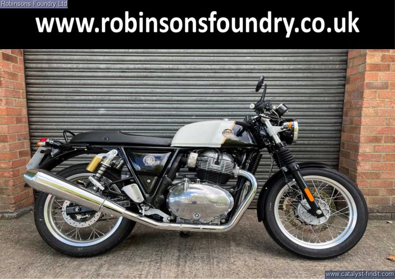 - This Royal Enfield Continental GT 650 is painted in stunning white and black combination. Having covered just 1193 miles it has been run in. The first service has been completed by us here at Robinsons. It's in beautiful showroom condition as expected by the mileage and has always been garaged, this bike does not disappoint on any level. This bike takes its inspiration from the legendary Royal Enfield parallel-twins from the 1960s. It has a charming and characterful 648cc air-oil-cooled engine delivering plenty of torque throughout acceleration. a wonderful stripped-down classic racer silhouette, resonating the cafe culture, making evry ride out an inspiration before even firing the engine. Test rides are available. All vehicles are subject to a comprehensive pre delivery inspection prior to collection and come with a minimum of 6 months MOT and 3 months/3000 mile warranty - with the option to extend (subject to T&Cs). HPI Checked. Walkaround videos and delivery available upon request. Secure with £100 deposit. Finance available (T&C's Apply). Our used stock changes constantly please contact us if you cannot see what you are looking for.