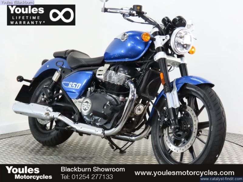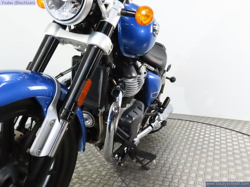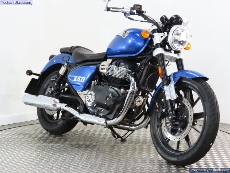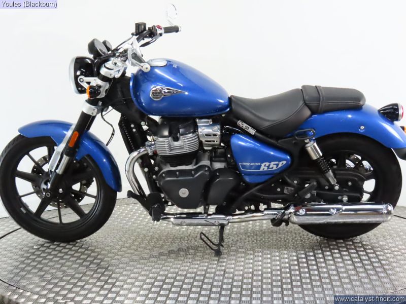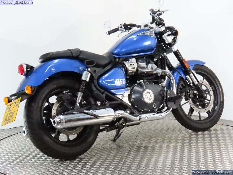 - Cracking Royal Enfield Super Meteor 650 in blue with only 950 miles on the clock! Comes fitted with Hagon rear shock and bar end mirrors, original shocks and mirrors included with sale. Full service history, 2 keys, owners manual and V5.