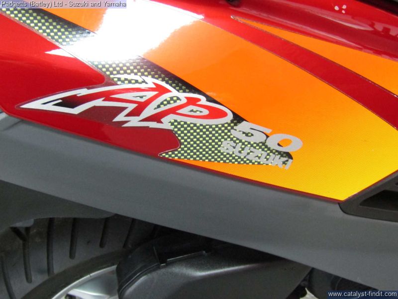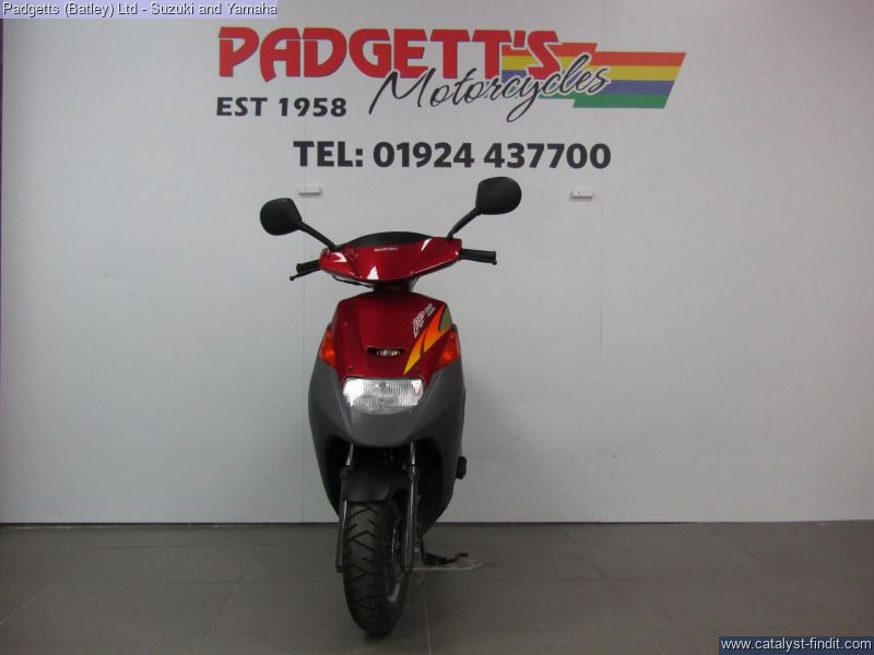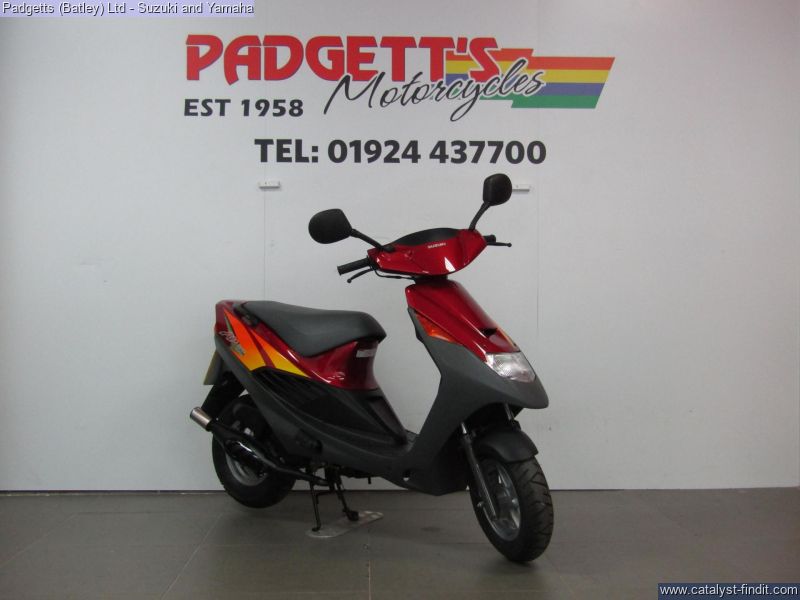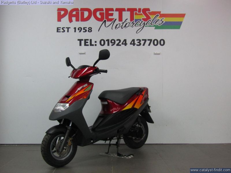 - We present here for sale this 1995 Suzuki AP50 2 Stroke scooter in Red. The bike has 29 delivery miles. The bike has a dry weight of 75kg – this includes no rider and fuel. The has never had a private owner – this bike was pre-registered in 2003 but have never had fuel in nor had it ever had the battery connected. The bike is available for viewing and is well worth a look. Finance is available and is subject to status. Part Exchanges welcome. Nationwide delivery can be arranged from as little as £75. Usual Dealer Facilities including a Large range of clothing, helmets & accessories. Call Padgett's Motorcycles today to ensure that you don't miss out; Suzuki Sales Centre 01924 609808, Honda Sales Centre 01924 437700 and Yamaha Sales Centre 01924 478491.