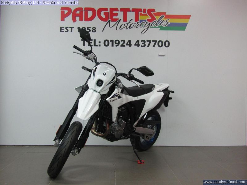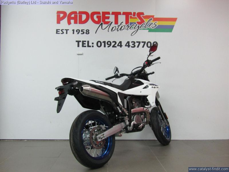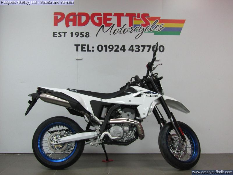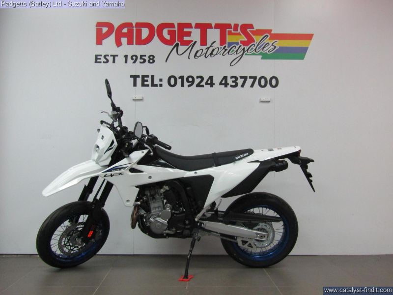 - We present here for sale this Suzuki 2025 NEW DR-Z4SM. YOUR WORLD. YOUR PLAYGROUND. With a punchy, new engine, agile chassis, and state-of-the-art electronics, built for precision and endless fun, the all-new DR-Z4SM lets you conquer the streets and the circuit, and turns your world into your playground. SUPERMOTO PERFORMANCE. The compact 398cc, liquid-cooled, DOHC engine that powered the original DR-Z400 became known for its performance, but also its robustness and reliability. One feature that helped enable it to develop this reputation was its dry sump lubrication system, which helped give greater levels of ground clearance. Suzuki has redesigned the engine for 2025, ensuring it hits all of its required legislation targets without sacrificing reliability and performance, making sure it produces an abundance of torque across its operating range and delivering a smooth, linear throttle response. The bike is available for viewing and is well worth a look. Finance is available and is subject to status. Part Exchanges welcome. Nationwide delivery can be arranged from as little as £75. Usual Dealer Facilities including a Large range of clothing, helmets & accessories. Call Padgett's Motorcycles today to ensure that you don't miss out; Suzuki Sales Centre 01924 609808, Honda Sales Centre 01924 437700 and Yamaha Sales Centre 01924 478491.