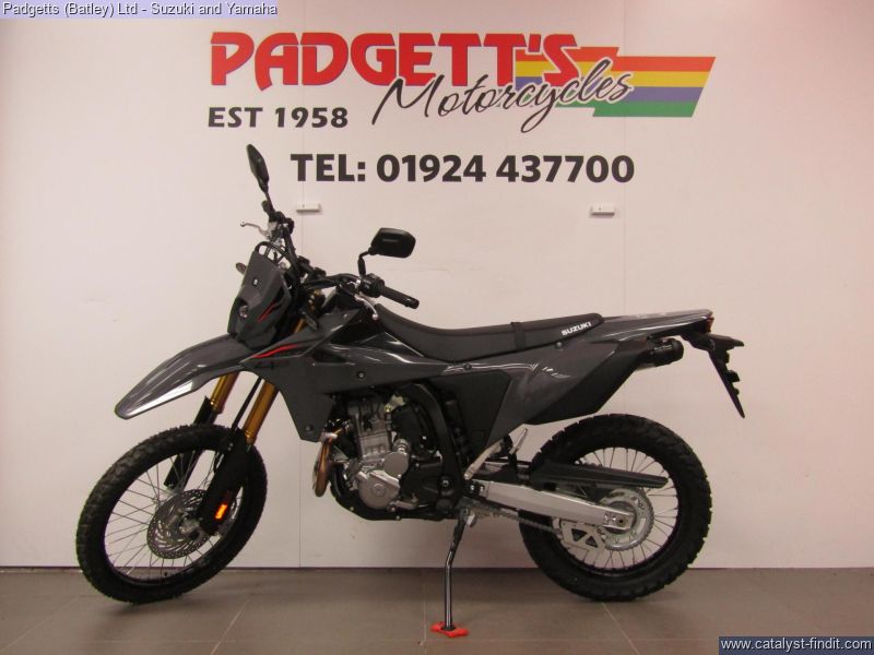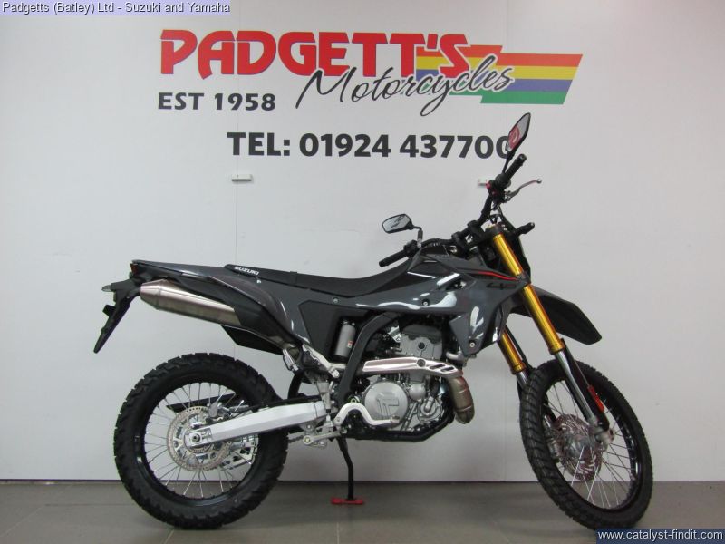 - We present here for sale this 2025 Suzuki DR-Z4. DR-Z4S - YOUR WORLD. YOUR PLAYGROUND. Equipped with a punchy, new single-cylinder engine tuned for low-down torque and responsive power delivery, a new chassis for superior handling, and a cutting-edge electronics package tailored for off-road adventures, the all-new DR-Z4S is ready to turn your world into your playground. DUAL SPORT PERFORMANCE. The compact 398cc, liquid-cooled, DOHC engine that powered the original DR-Z400 became known for its performance, but also its robustness and reliability. One feature that helped enable it to develop this reputation was its dry sump lubrication system, which helped give greater levels of ground clearance. Suzuki has redesigned the engine for 2025, ensuring it hits all of its required legislation targets without sacrificing reliability and performance, making sure it produces an abundance of torque across its operating range and delivering a smooth, linear throttle response. The bike is available for viewing and is well worth a look. Finance is available and is subject to status. Part Exchanges welcome. Nationwide delivery can be arranged from as little as £75. Usual Dealer Facilities including a large range of clothing, helmets & accessories. Call Padgett's Motorcycles today to ensure that you don't miss out; Suzuki Sales Centre 01924 609808, Honda Sales Centre 01924 437700 and Yamaha Sales Centre 01924 478491.