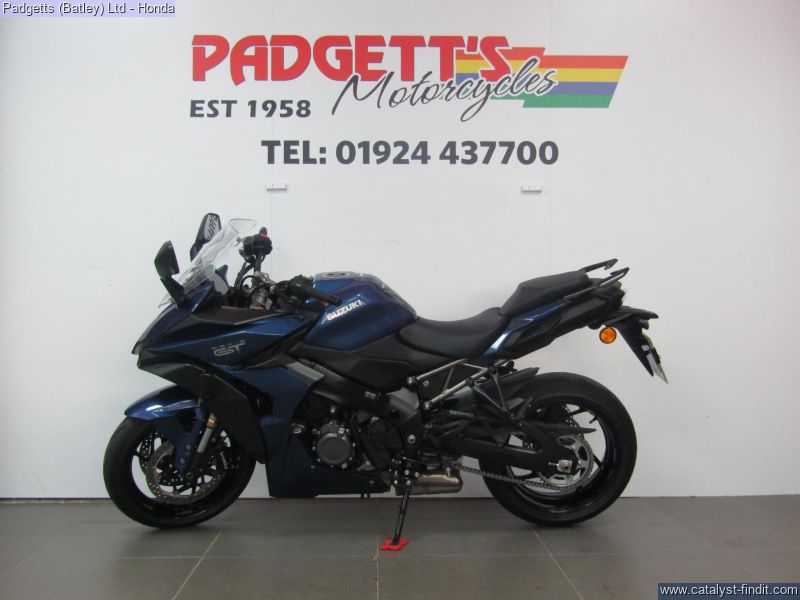 - We present here for sale this Suzuki GSX-S1000GT in Reflective Blue. The bike has only covered 1,857 miles and is in great condition. The bike has been fitted with some superb extras including: - R&G Crash Protectors and Genuine Suzuki Tank Pad. The bike comes complete with Original Owner’s Manual, 2 Keys, Service Book Showing Part Service History (1st Service only @ 357 miles) and Log book. The bike is available for viewing and is well worth a look. Finance is available and is subject to status. Part Exchanges welcome. Nationwide delivery can be arranged from as little as £75. Usual Dealer Facilities including a Large range of clothing, helmets & accessories. Call Padgett's Motorcycles today to ensure that you don't miss out; Suzuki Sales Centre 01924 609808, Honda Sales Centre 01924 437700 and Yamaha Sales Centre 01924 478491.