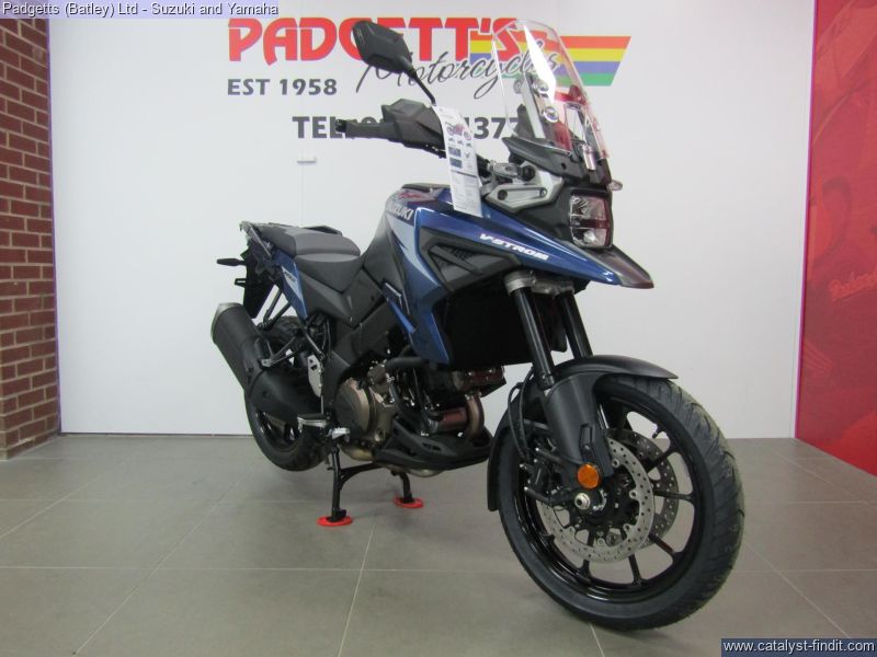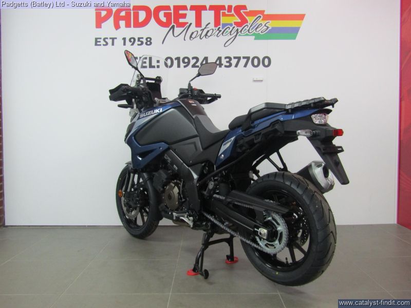 - We present here for sale this 2023 Suzuki DL1050A. FOR WHEREVER YOUR JOURNEY TAKES YOU. Conquer new terrain, explore new horizons, and experience new adventures. A 19- inch cast front wheel with road focused tyres, generous rider and pillion seats, large adjustable screen and dedicated handlebars and footpegs provide comfort and long- haul on-road ability. Bespoke ergonomics, electronic rider aids, cruise control, quickshifter and full-colour TFT display offer even greater confidence and excitement on every journey. ANY TERRAIN. ANY HORIZON, ANY ADVENTURE. POWERFUL V-TWIN ENGINE. The new V-Strom 1050 is powered by the latest iteration of Suzuki’s distinctive, liquid-cooled, four-stroke, 90° V-Twin DOHC engine. The product of many years of development by a dedicated team of passionate engineers, this engine has long enjoyed a reputation for delivering enjoyable character, power, reliability, and a great soundtrack for your next adventure. PURPOSEFUL WHEELS AND TYRES. The V-Strom 1050 rides on 10-spoke cast aluminium wheels shod with Bridgestone Battlax Adventure A41 radial tyres. The 110/80R19 front and 150/70R17 rear tyres contribute to agile handling and positive grip, whether the road surface is dry or wet. They provide a smooth ride and greater comfort when touring for long distances and continue to inspire confidence even when you continue your adventure beyond where the pavement ends. OPTIMISED SUSPENSION. KYB inverted front forks with 43mm inner tubes deliver a smooth, controllable ride and feature stable damping characteristics well suited to adventure riding. Fully adjustable, they allow you to match settings to your preference or intended use. The link-type monoshock KYB rear suspension contributes to agility and stability, and its preload can be adjusted by simply turning the dial by hand. The V-Strom 1050 suspension adopts a stroke, with 160mm of front and 160mm of rear travel, perfect for on-road adventures or lighter use on unpaved roads. PROVEN ALUMINIUM FRAME. The pursuit of building high-performance aluminium frames has been an integral part of Suzuki’s engineering DNA for decades, and the frame for the V-Strom 1050 remains true to this heritage. It incorporates aluminium castings and extruded aluminium sections to lend the right amount of suppleness and strength to an overall rigid structure. The result is a trim, light and strong frame of tried and tested reliability that delivers excellent straight-line stability, handles brilliantly and is easy to manoeuvre, wherever your journey takes you. ERGONOMICS & SEAT FOR THE LONG-HAUL. Dedicated chassis geometry is designed to deliver greater levels of comfort, stability, and control on paved surfaces. The V- Strom 1050 also features an independent rider and pillion seat design that is both visually appealing and achieves the right level of firmness to provide plenty of comfort with less fatigue on long rides. The rider seat height can be raised 20mm using an included height risers stored beneath the pillion seat. While an Optional lower (30mm) seat is also available from the Genuine Accessories range. HANDLEBARS & FOOTPEGS WITH ADDED COMFORT. The V-Strom 1050 continues to use the proven aluminium tapered handlebars of its predecessor; this extends to a different width and grade of aluminium compared to the 1050DE. These bars are shaped to be comfortable over long tours and on sportier road rides. The V-Strom 1050 is fitted with rubber-covered aluminium footpegs that provide additional comfort when touring for long distances, rather than the steel off-road orientated items of the 1050DE. COMPREHENSIVE STANDARD EQUIPMENT. A USB port built into the left side of the dash cluster supplies power for recharging smartphones and there is also a 12V DC outlet under the seat to charging other items too.3 Knuckle covers enhance the adventure styling of the machine while offering added protection from the weather, as well as protection from flying stones. The standard fitment centre stand brings added convenience and practicality for use during maintenance, loading, or parking on loose surfaces. At the rear, luggage mounts for the integrated accessory panniers can be found as well, in addition to the stylised plastic belly pan. The 1050 also includes rider seat adjustment (20mm higher) and screen adjustment of 50mm too as standard. RELIABLE STOPPING POWER. A pair of Tokico radial mount monobloc callipers, each with four opposed pistons, act on 310mm floating-mount discs to provide reliable stopping power in the front. These work in conjunction with the rear disc brake as part of the ABS that helps prevent the wheels from locking up, for more stable braking. The advanced braking system for the 1050 also features linked brakes, lean-angle sensitive ABS, switchable ABS, and a host of other breaking technologies supported by the 6 axis Inertial Measurement Unit (IMU). For full details of these systems and their benefits please explore the SIRS information on this page. The bike is available for viewing and is well worth a look. Finance is available and is subject to status. Part Exchanges welcome. Nationwide delivery can be arranged from as little as £75. Usual Dealer facilities including a Large range of clothing, helmets & accessories. Call Padgett's Motorcycles today to ensure that you don't miss out; Suzuki Sales Centre 01924 609808, Honda Sales Centre 01924 437700 and Yamaha Sales Centre 01924 478491.