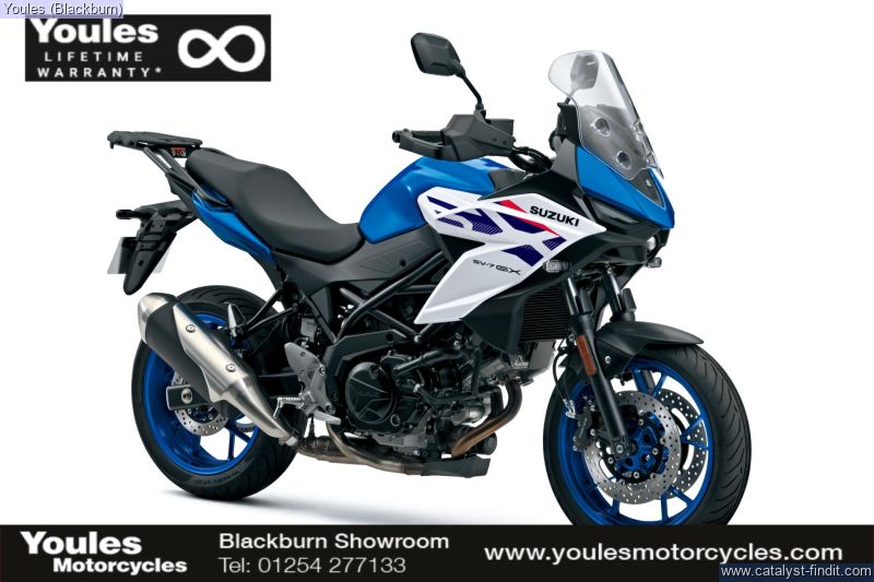 - Introducing the all-new Suzuki SV-7GX, a crossover designed to bring unmatched versatility to the midweight class. Inspired by the spirit of the iconic SV650, it blends the sharp agility of a sportbike with the upright comfort and confidence of an adventure tourer. At its core is Suzuki's legendary 645 cm³ V-twin engine, refined over decades for smooth, dependable power. Now enhanced with ride-by-wire throttle, selectable drive modes, traction control, and a quick shifter, the SV-7GX is ready for city commutes, winding backroads, and long weekend rides alike.