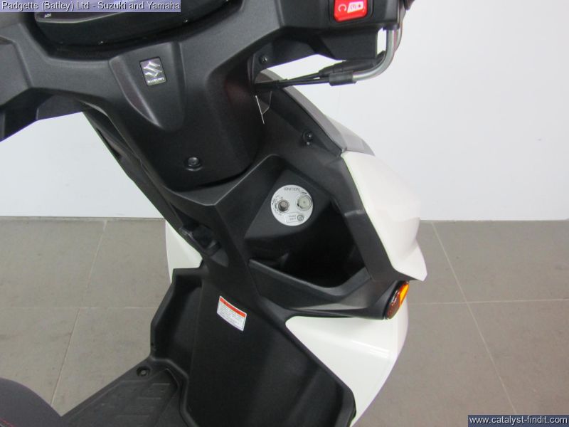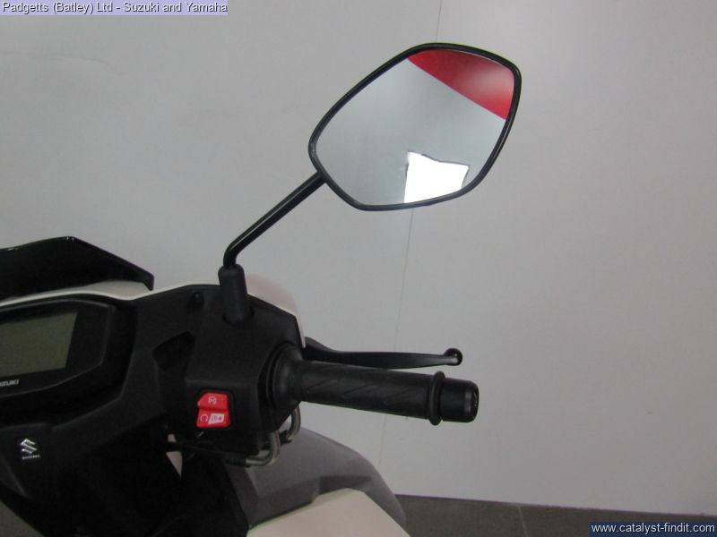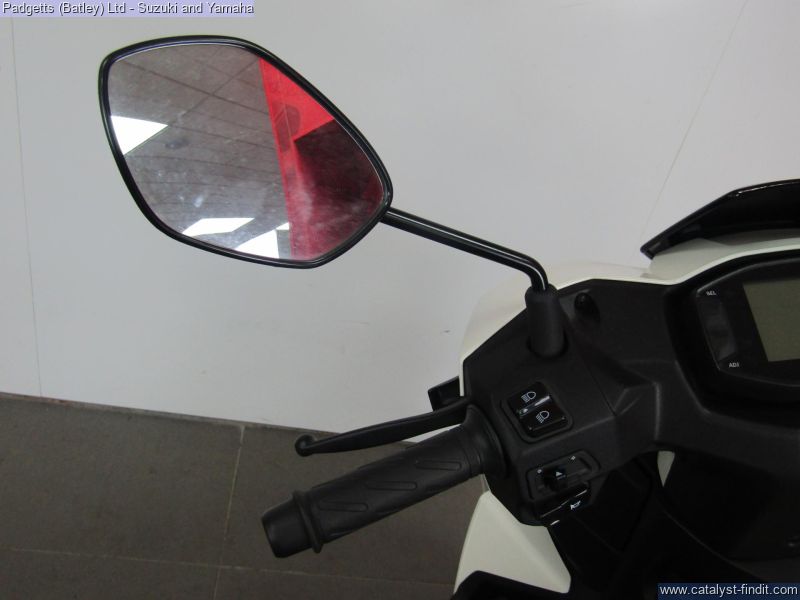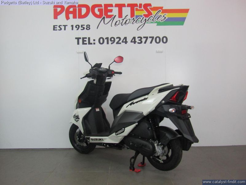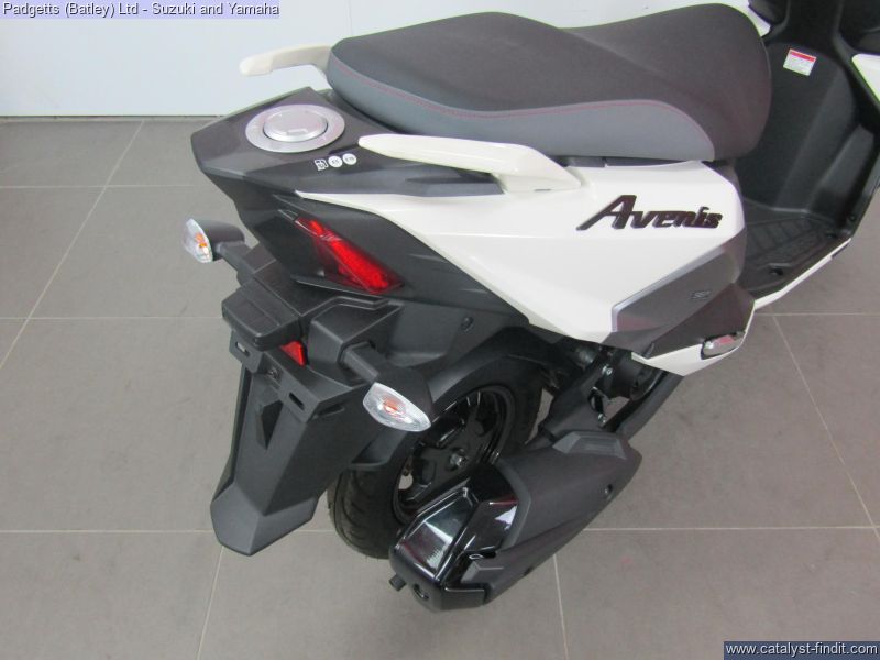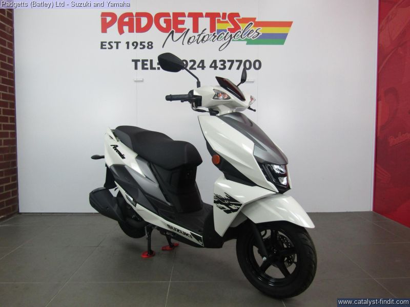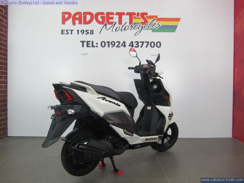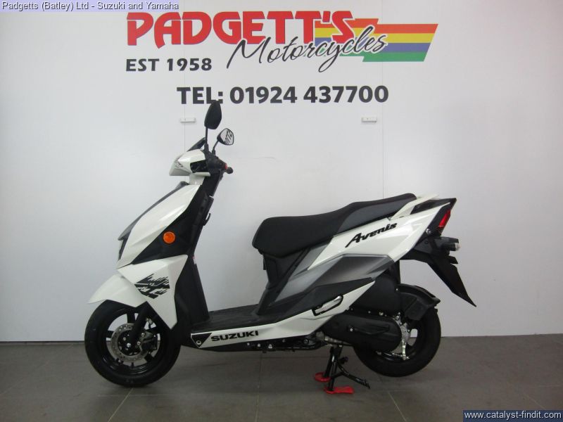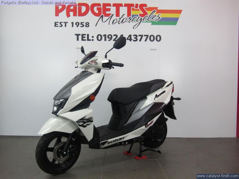 - We present here for sale this Suzuki Avenis 125. The Avenis 125 excels as a sporty environmentally responsible scooter. Developed to comply with the stringent Euro 5 emissions standards, the Avenis 125 achieves outstanding fuel efficiency of 148.67MPG6 and CO2 emissions of a mere 44g/km in WMTC mode testing.* AGILE HANDLING AND COMFORT. Engineered to provide agile handling and comfort, the Avenis 125 is designed to maximise the potential of its SEP engine. Everything, from the design of the frame and selection of wheels and tyres to optimising suspension performance, the Combined Brake System (CBS)¹, is geared toward achieving this goal. The Avenis 125 proves its ability to excel in any urban riding situation. SPACIOUS STORAGE DESIGN. The underseat compartment² features a capacity of 21.5 litres and provides convenient space to store items and protect them from the elements. The covered left-side front compartment is large enough to accommodate a large-screen smartphone. The inner pocket on the front right side offers storage space large enough to hold a 500ml beverage or some other small item the rider may want to keep close at hand. A pair of sturdy hooks³ let you hang various types of bags, including shopping bags, with greater convenience. The back hook³ can be locked to better secure items, and can be folded out of the way when not in use. LIGHTWEIGHT FRAME. The product of repeated simulations that employed CAE technology, the underbone frame is built using large- diameter, thin, round material. Designed to minimise weight while maximising rigidity, this frame contributes to the Avenis 125’s outstanding fuel efficiency. It also provides excellent straight-line stability and positive cornering performance. AGILE HANDLING. The front suspension settings provide a smooth and comfortable ride, with the spring rate and operation of the telescopic front forks optimised for the front wheel weight distribution of the Avenis 125. Both the forks and rear suspension are finely tuned to deliver solid road-holding performance, agile handling, and a plush ride. ALUMINIUM WHEELS AND DUNLOP TYRES. The cast aluminium wheels are shod with tubeless Dunlop D307 N tyres. These combine with tuned suspension settings to deliver superior running performance, positive grip on wet surfaces, and a smooth ride. The rear wheel can also be removed without removing the muffler. This improves serviceability. COMBINED BRAKE SYSTEM. Suzuki’s Combined Brake System¹ supports well-balanced braking by distributing braking force to both the front and rear wheels when the left brake lever is operated. Stable stopping power is provided by a 190mm diameter disc brake in the front and a 120mm drum brake in the rear. Once parking up on the Avenis 125, a switch on the left brake lever enhances comfort and convenience by locking the rear wheel to keep the Avenis 125 in place. SPORTY TWO-TONE SEAT. The sporty two-tone seat with attractive red stitching is firm yet comfortable, with ample padding and a richly textured surface that provides a secure grip when riding, even when making quick movements. In addition, its carefully crafted shape makes it easy for the rider to put both feet on the ground when stopped. The wide floorboard enables riders of varying builds to maintain a comfortable riding position. The convenient cut-away design makes it easy to place both feet firmly on the ground when stopped. SPEED, DYNAMISM AND AGILITY. Sharp, aerodynamically efficient lines and advanced engineering. The Avenis 125 was designed from the ground up to evoke this visual sense of speed, dynamism and agility. Its style draws on Suzuki’s sports bike heritage, with futuristic body lines and front and side cowling accents that accentuate its performance credentials. From its striking front end to its sleek, upswept tail, the Avenis 125 is designed for people who want to experience the fun and exhilaration of two-wheeled urban freedom with a sporty sense of style. MULTIFUNCTION DIGITAL INSTRUMENT PANEL. The digital instrument panel4 for the Avenis 125 features a compact LCD screen with a clean and intuitive layout that displays all the information the rider requires. The panel’s LCD readouts include the speedometer, clock, current fuel consumption, average fuel consumption (x2), engine temperature, odometer, dual tripmeters, fuel gauge, battery voltage meter, and oil change interval reminder. LED indicators flanking the main screen include the turn signals, Eco Drive Indicator, master warning, high beam and malfunction. The Suzuki Eco Drive Indicator lights up when the scooter is being ridden in a fuel-efficient manner, offering instant feedback that can help riders learn techniques for maximising fuel economy. LED LIGHTS. The headlight is mounted low on the face of the Avenis 125 and features a stacked lens design. The headlight assembly employs bright, long-lasting, low-power LED lights, with three low beam lights in the upper section and two high beam lights in the lower section providing improved forward visibility at night. Being body-mounted, the design also aids agile handling. Flanking the headlight are vertically- oriented LED position lights integrated into the assembly to add a striking accent and premium touch. Upswept tail lines and high-mounted independent LED combination lights add to the sporty appearance. Mounted lower on the tail, the rear turn signals also take their cue from sports bike design. The bike is available for viewing and is well worth a look. Finance is available and is subject to status. Part Exchanges welcome. Nationwide delivery can be arranged from as little as £75. Usual Dealer facilities including a Large range of clothing, helmets & accessories. Call Padgett's Motorcycles today to ensure that you don't miss out; Suzuki Sales Centre 01924 609808, Honda Sales Centre 01924 437700 and Yamaha Sales Centre 01924 478491.