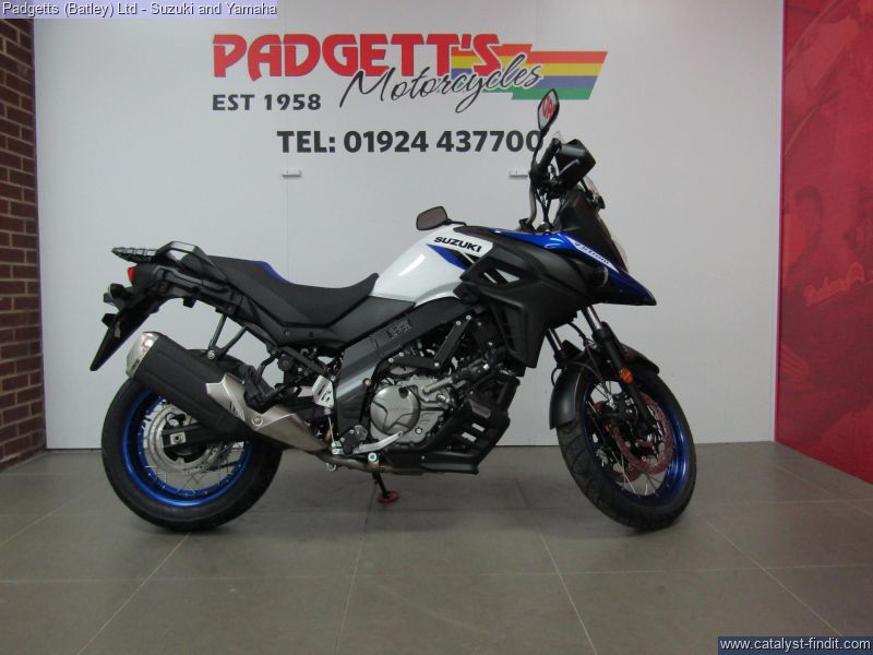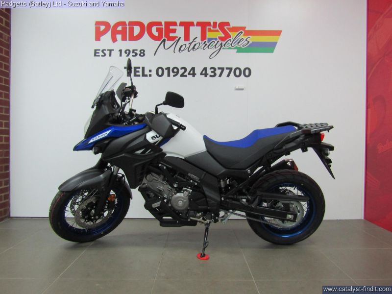 - We present here for sale the Suzuki DL650X V-Strom. The ultimate tackle to Do-It-All. Every day commuting, rough and wet conditions, B-Road twisties, long highway stretches, two-up comfort, the tool that never lets you down. Think of a task, a challenge, an adventure. The answer to every thought. V-Strom 650XT. The 645cc DOHC V-Twin is a masterpiece of Suzuki engineering which has an evolving history. For the new 650, this unit has been tuned for generous low-to-mid-range torque for practical use while maintaining an exhilarating top-end. With two V-Strom 650 variants available, as standard the V-Strom 650XT is fitted with wire spoke wheels for better shock absorption and comfort, as well as knuckle covers and an under cowling. With 3 years warranty and 1 years roadside assistance, please note that OTR fees apply. The bike is available for viewing and is well worth a look. Finance is available and is subject to status. Nationwide delivery can be arranged from as little as £60. Usual Dealer facilities including a Large range of clothing, helmets & accessories. Call Padgett's Motorcycles today to ensure that you don't miss out; Suzuki Sales Centre 01924 609808, Honda Sales Centre 01924 437700 and Yamaha Sales Centre 01924 478491.PLUS £366 OTR