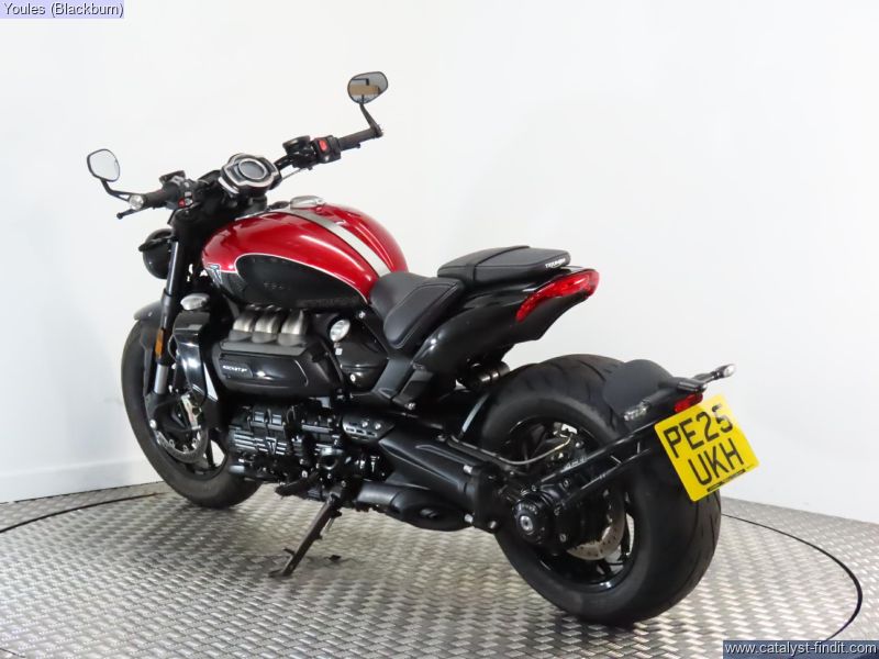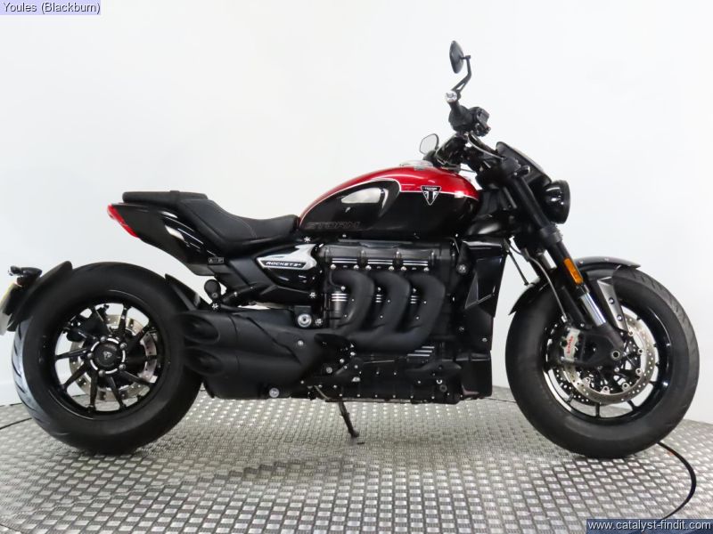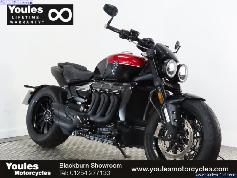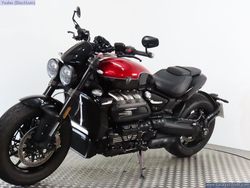 - FANTASTIC condition Triumph Rocket 3 R Storm in Carnival Red & Sapphire Black with a mere 989 miles. Full Triumph service history This bike will come with the remaining manufacturer’s warranty, you will have the option to upgrade this warranty for another 1 year at a cost of £250.00 or for another 2 years at a cost of £400.00.