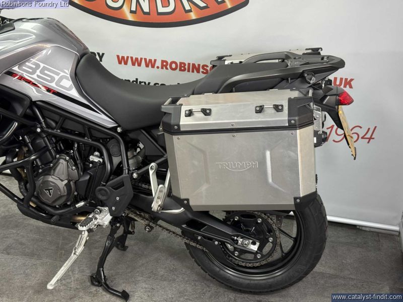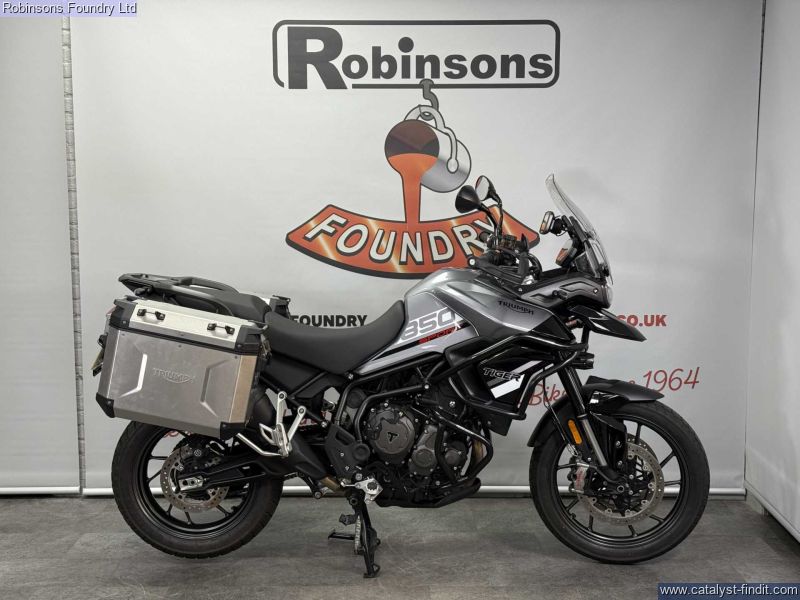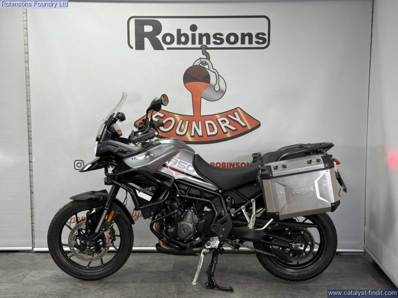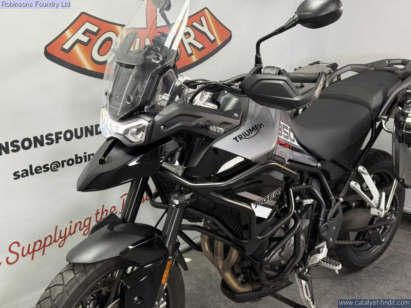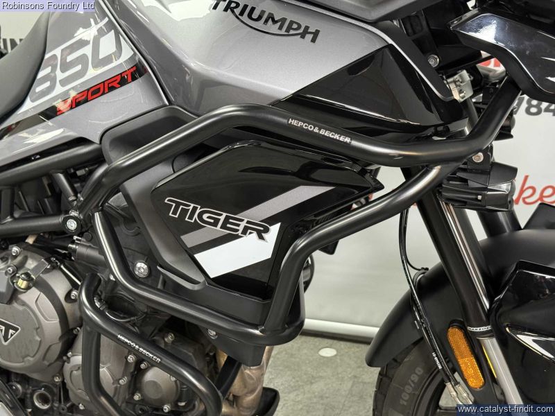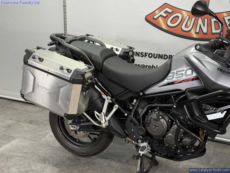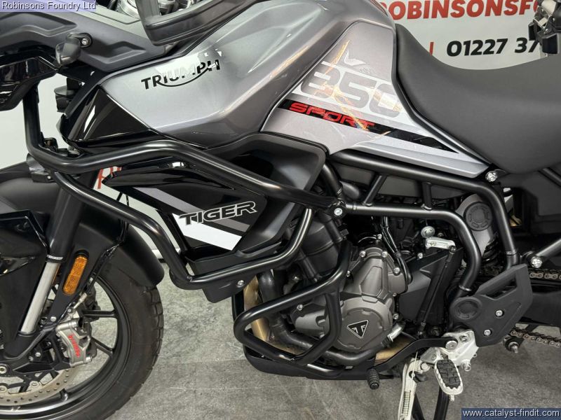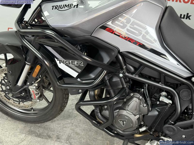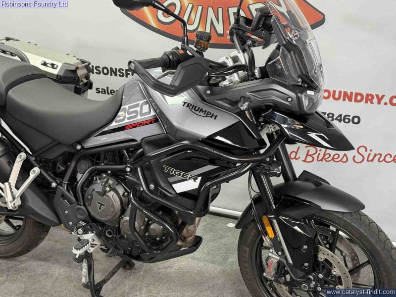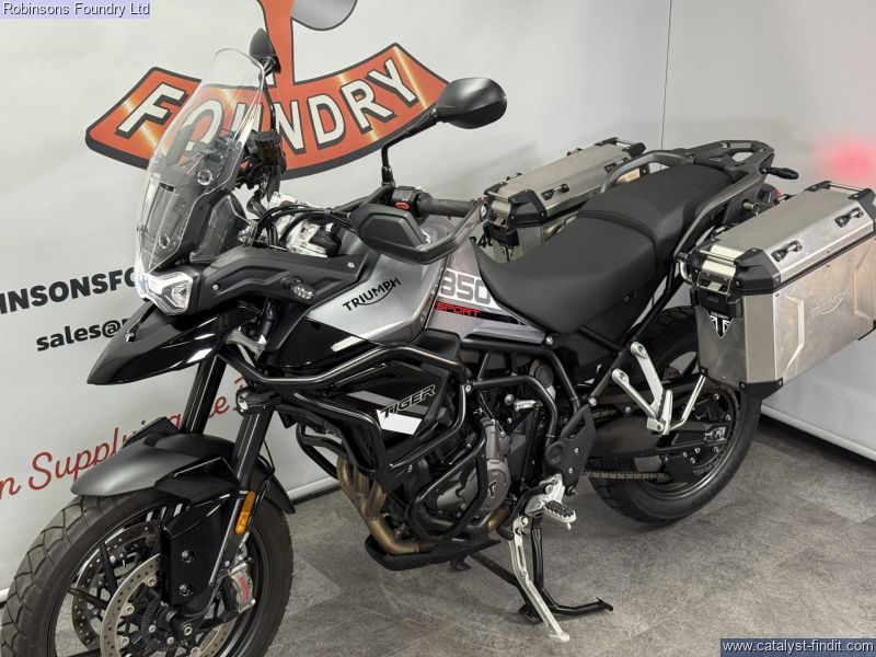 - Used Triumph Tiger 850 Sport for Sale – £8,750This beautifully presented Triumph Tiger 850 Sport comes fully equipped for adventure, with just 3,174 miles and a full Triumph service history, the last Triumph-approved service carried out in September. Finished in classic Triumph style and in excellent condition throughout, this bike has been fitted with a host of premium extras, including a TomTom Rider 550 sat nav, Hepco & Becker upper crash bars and lower protection, fog lights, and Triumph aluminium side panniers — all enhancing its capability and touring comfort.Powered by Triumph’s flexible 888cc triple engine, the Tiger 850 Sport delivers smooth, responsive performance on both road and trail, while offering the comfort and practicality that make it a true all-rounder.All vehicles are subject to a comprehensive pre-delivery inspection prior to collection and come with a minimum of 6 months MOT and 3 months/3000- mile warranty, with the option to extend (subject to T&Cs). HPI checked. Walkaround videos and delivery available upon request. Secure with a £100 deposit. Finance available (T&Cs apply).Our used stock changes constantly — please contact if you don’t see what you’re looking for.