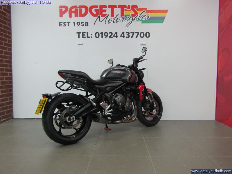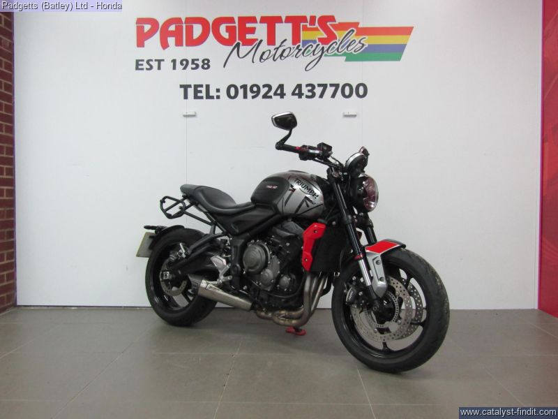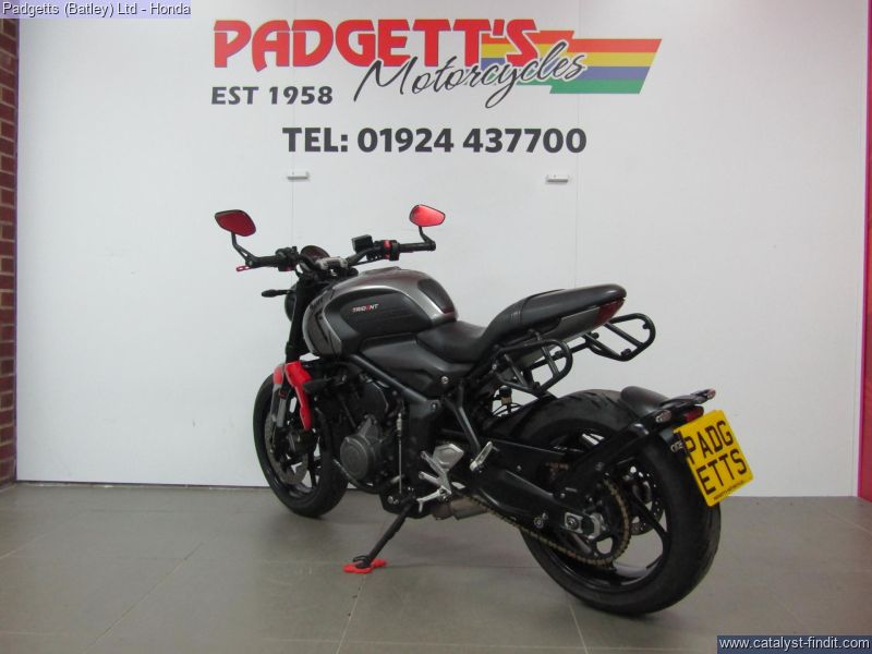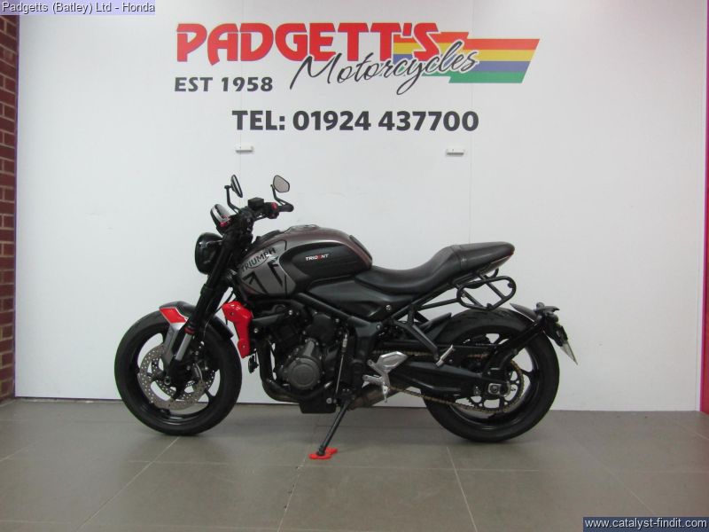 - We present here for sale this Triumph Trident 660 in Silver & Red. The bike has only covered 11,911 miles and is in great condition. The bike has been fitted with some superb extras including: - Lowered with Short Side Stand and Original Side Stand, Triumph Heated Grips, Bar Ends Mirrors, Pannier Rails, Quickshifter, Zart Exhaust System, Crash Bobbins and Aftermarket Levers. The bike comes complete with Original Owner’s Manual, 2 Keys, Service Book Showing Part Service History (4 Services – last @ 11,851 on 04/10/2025) and Log book and is Datatag’ed. The bike is available for viewing and is well worth a look. Finance is available and is subject to status. Part Exchanges welcome. Nationwide delivery can be arranged from as little as £75. Usual Dealer Facilities including a Large range of clothing, helmets & accessories. Call Padgett's Motorcycles today to ensure that you don't miss out; Suzuki Sales Centre 01924 609808, Honda Sales Centre 01924 437700 and Yamaha Sales Centre 01924 478491.