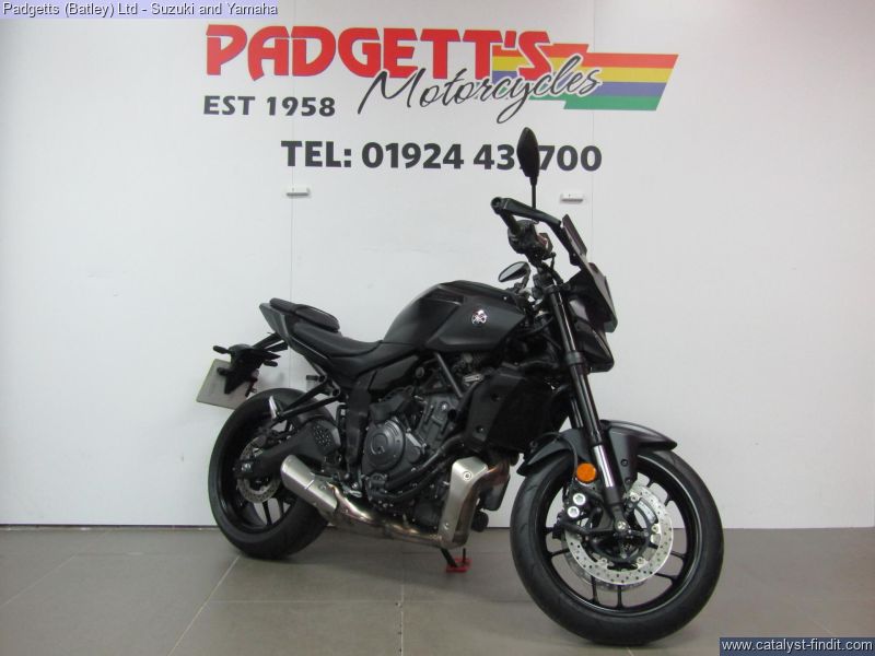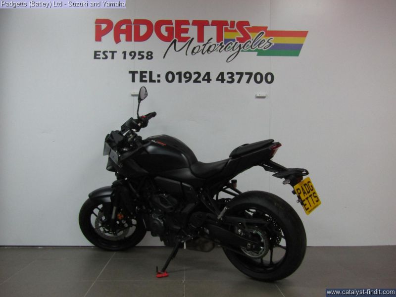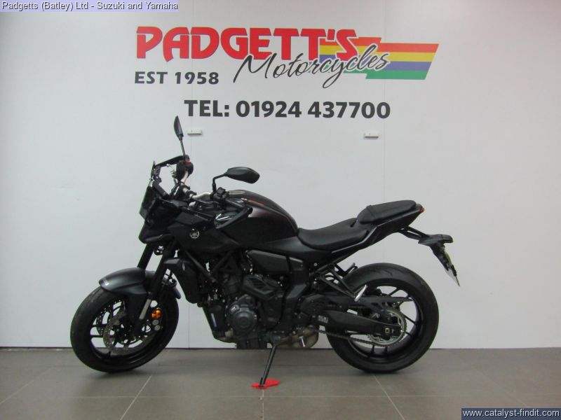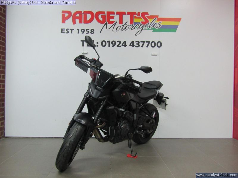 - We present here for sale this Yamaha MT-07. The MT-07 has been among Europe's best selling motorcycles since its launch, and for good reason. It delivers one of the purest and most thrilling riding experiences, inspired by the riding sub-cultures found on the urban streets of Japan. Famed for its light weight, agile handling and torque-laden CP2 engine, the MT-07 is now punchier than ever. This latest evolution features new styling, chassis updates and technologies to further enhance the riding experience, while not detracting from what has made the MT-07 one of the most important motorcycles of the last decade: grin-inducing fun. The latest MT-07 features the highest spec yet, including radially mounted front brake calipers, 41 mm inverted forks and lightweight SpinForged wheels. This contributes to a motorcycle with heightened levels of agility, while the innovative acoustic amplifying technology optimises the intake noise and unleashes the famous CP2 growl for the most engaging and immersive ride yet. The compact new look perfectly embodies the MT-07’s stripped-back nature, with a revised and more commanding riding position and a distinctive identity driven by the minimalist LED headlight unit. With engineering and styling in perfect harmony, nothing has been added to the MT-07 unless it truly adds to the riding experience. The result is a motorcycle which is fleet of foot yet punching hard, elevating the Dark Side of Japan attitude to a whole new level. The bike is available for viewing and is well worth a look. Finance is available and is subject to status. Part Exchanges welcome. Nationwide delivery can be arranged from as little as £75. Usual Dealer Facilities including a Large range of clothing, helmets & accessories. Call Padgett's Motorcycles today to ensure that you don't miss out; Suzuki Sales Centre 01924 609808, Honda Sales Centre 01924 437700 and Yamaha Sales Centre 01924 478491.