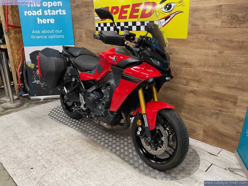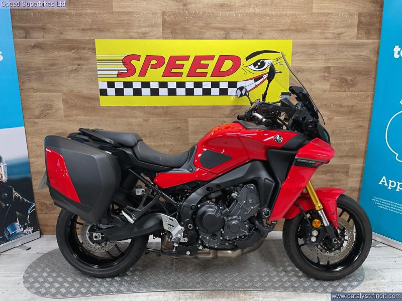 - 2023 Yamaha Tracer 9 GT, only 3583 miles and 1 owner from new, hand book and spare key, the bike is in excellent condition and comes fitted with panniers, frame protectors and a Tom Tom Sat Nav. The 2023 Yamaha Tracer 9 GT is one of the most advanced sports tourer Yamaha has ever built.This is a fine sports tourer that should keep the Tracer name at the top end of the sale charts upon its for a very long time, but the extra specs of the GT really make it an essential purchase. Retail bikes: Competitive finance & great part exchange allowances. Call our team for an easy, no obligation quote. All our retail bikes come with a full PDI, valet & 3 months total cover warranty (additional £75). Credit & debits cards accepted. Delivery in mainland UK from only £125 + VAT. Compulsory admin fee of £100 for 3rd party finance.